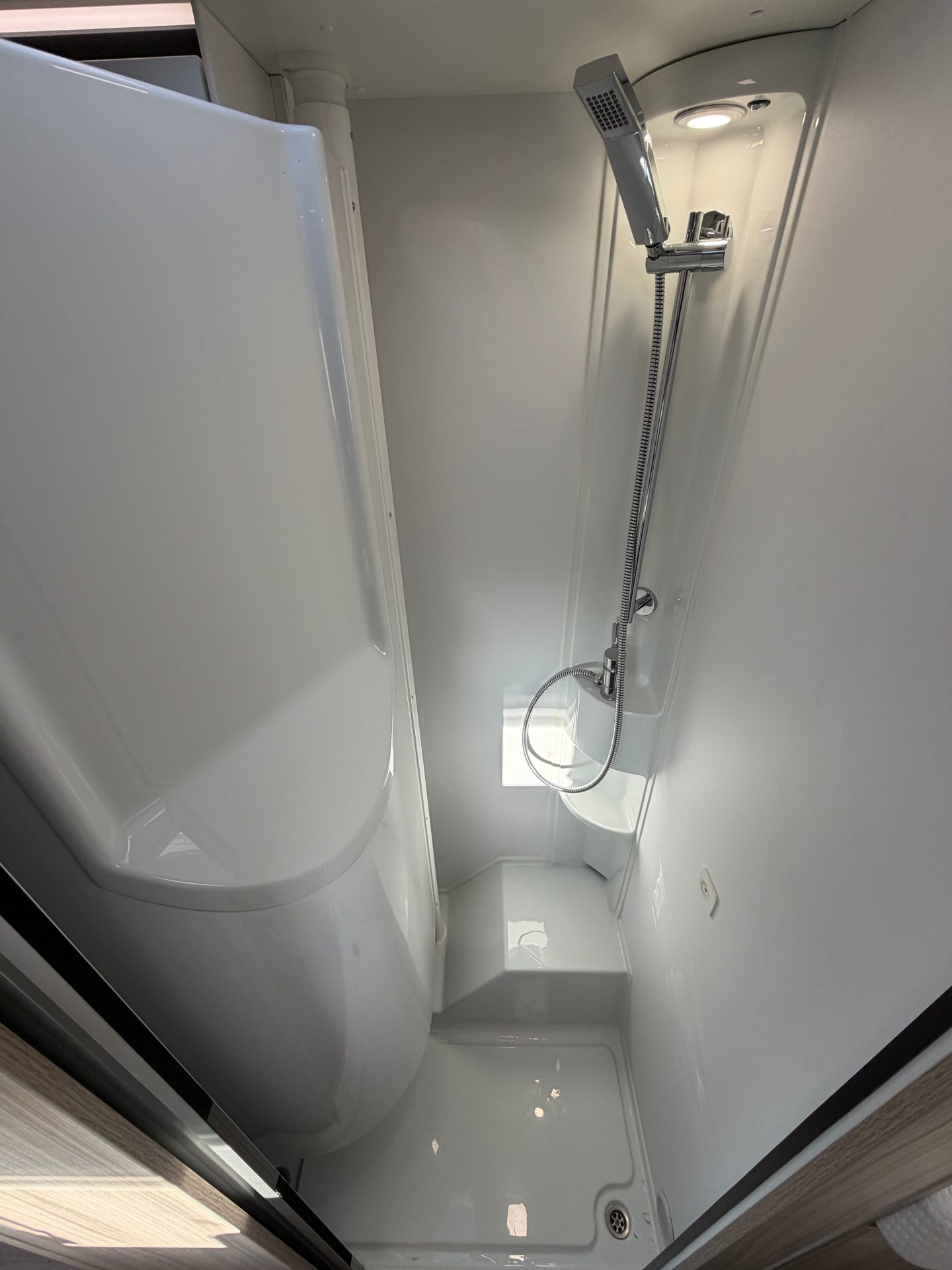 Ook het sanitair biedt volop comfort. De ruime douche- en toiletruimte is praktisch ingedeeld, zodat je je onderweg in alle rust kunt opfrissen. Dankzij de Truma boiler is er altijd voldoende warm water beschikbaar, ook tijdens het douchen. En met een nieuwe toiletset ben je direct klaar voor vertrek!