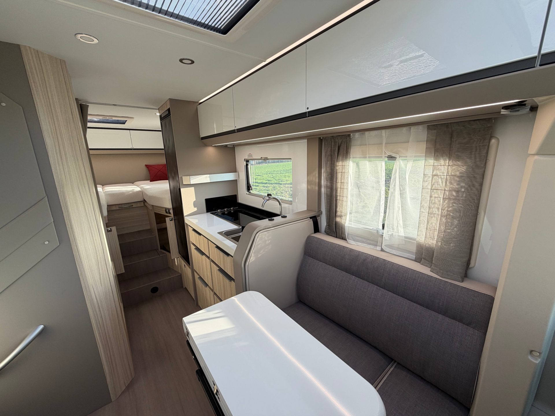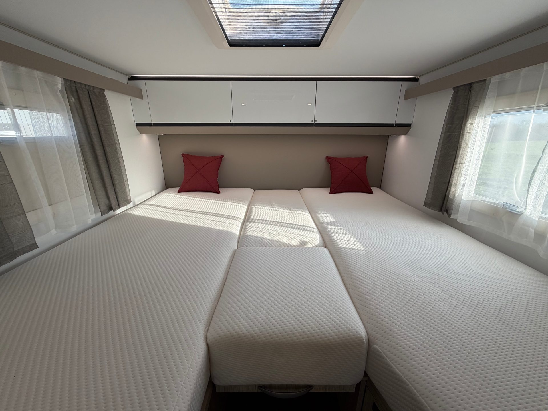 Deze camper is ontworpen voor een uitstekende nachtrust. De comfortabele lengtebedden met nieuwe matrassen bieden optimale ondersteuning en kunnen eenvoudig worden samengevoegd tot één groot bed. Onder de bedden bevindt zich veel praktische opbergruimte. Daarnaast zijn leeslampjes en USB-aansluitingen aanwezig bij de bedden. De dinette kan bovendien worden omgebouwd tot een derde slaapplaats.