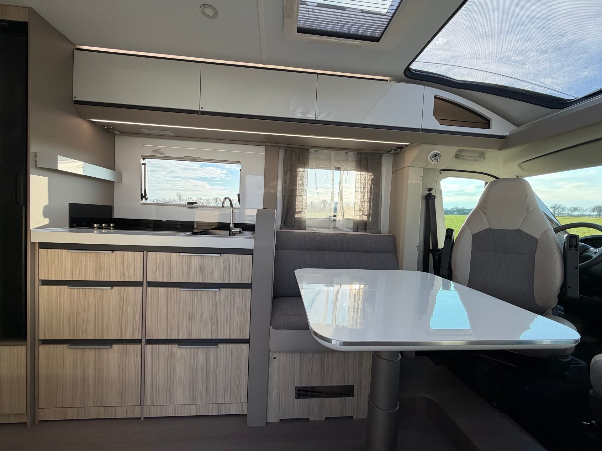 Dankzij de slimme indeling en Face-to-Face zithoek biedt deze compacte camper een uitzonderlijk ruime leefruimte – zonder in te leveren op comfort.