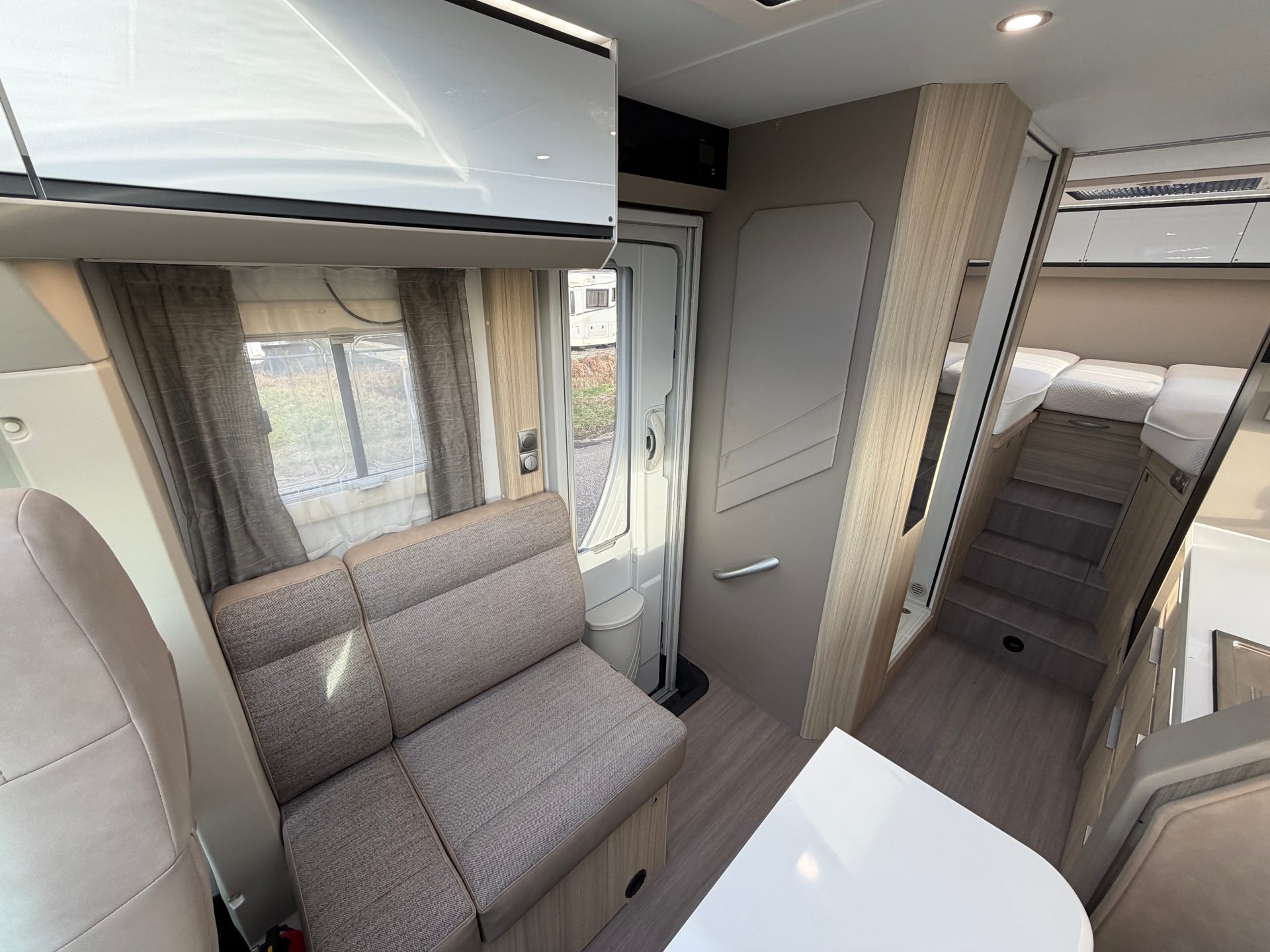 De camper beschikt over comfortabele lengtebedden en een praktische middenopstelling van keuken en badkamer. Achterin bevindt zich de ruime XXL verwarmde garage, ideaal voor fietsen en andere vakantiespullen.
