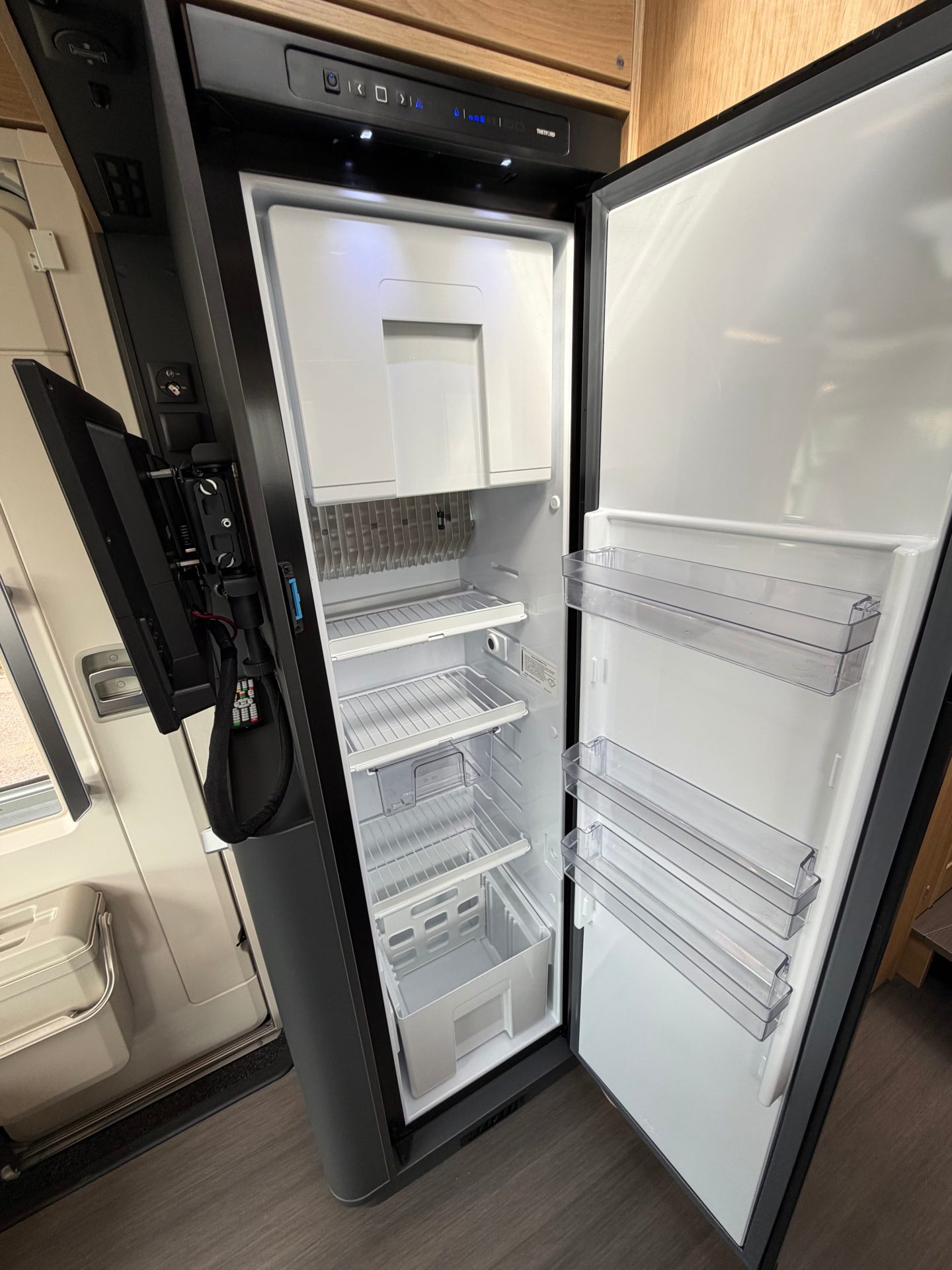 Ook de sanitaire ruimte is ontworpen met comfort in gedachten. De gescheiden douche- en toiletruimte biedt je alle privacy en gemak om je onderweg op te frissen. Dankzij de Truma boiler beschik je altijd over voldoende warm water. Slim detail: de toiletdeur functioneert ook als scheidingsdeur, zodat je het woon- en badgedeelte eenvoudig van elkaar afsluit. En met onze nieuwe toiletset geniet je direct van optimale hygiëne.