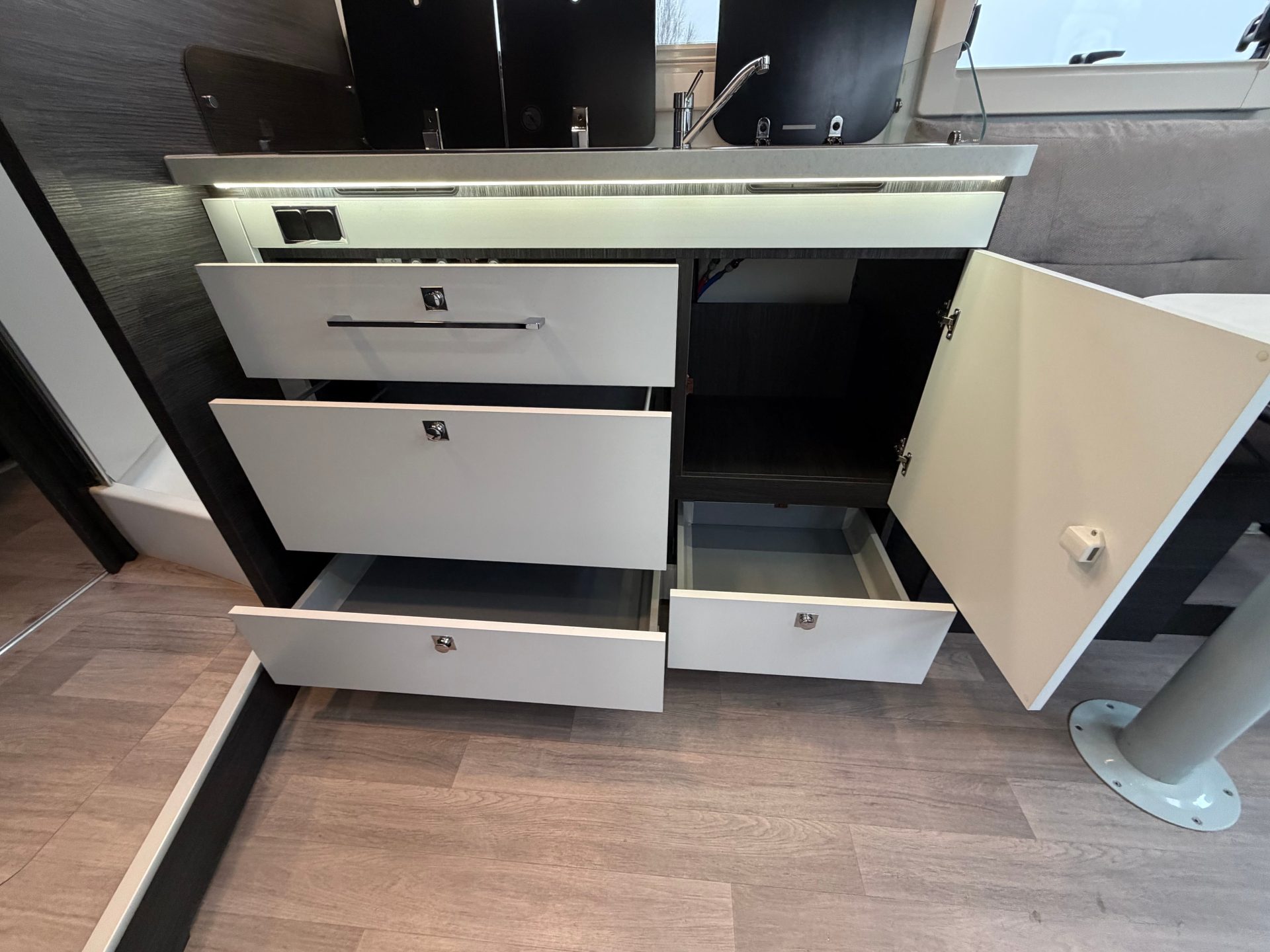 Alles binnen handbereik om ook onderweg uitgebreid te kunnen koken.