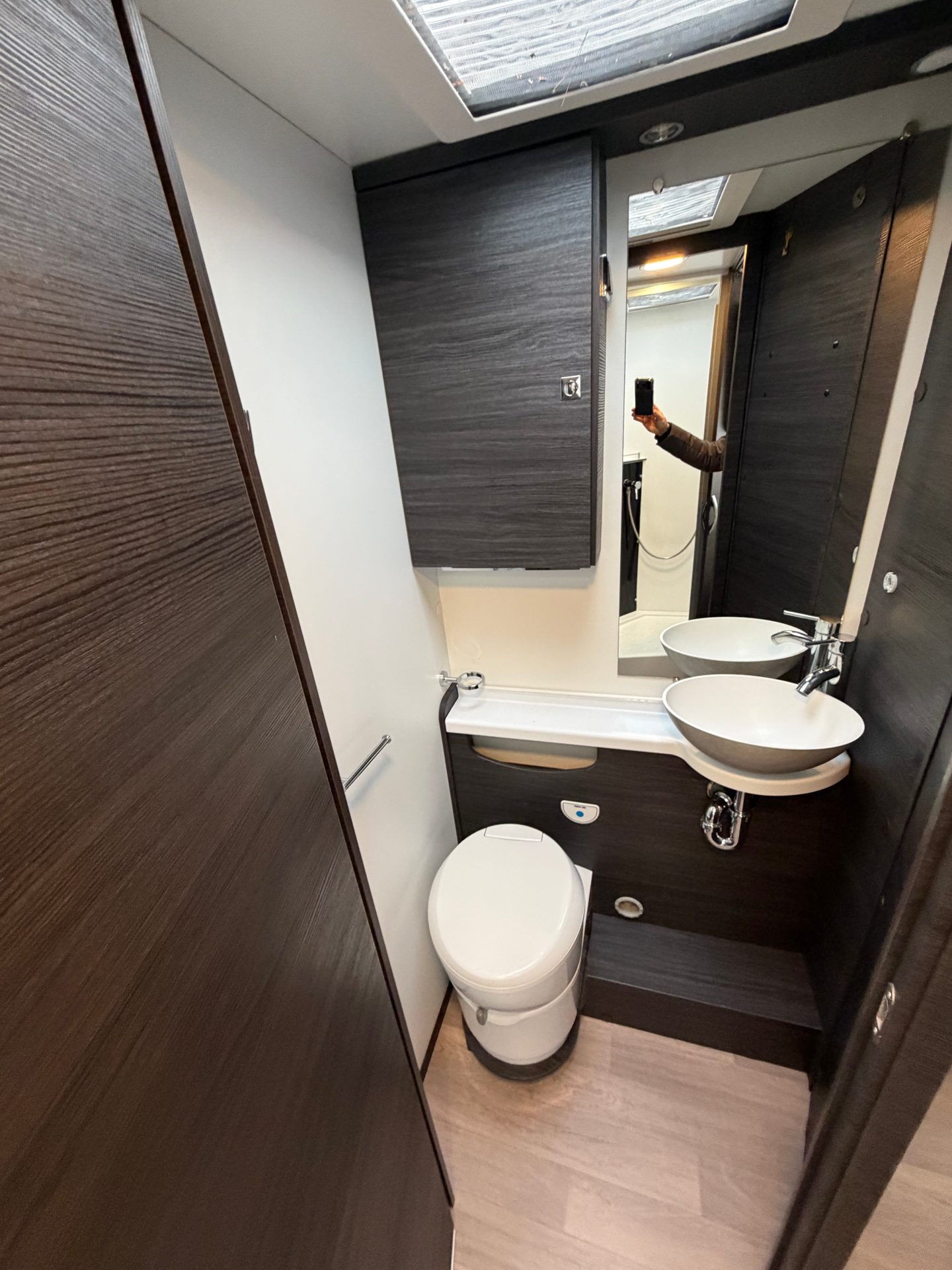 De ruime sanitaire ruimte is praktisch ingedeeld met een gescheiden douche en toilet-/wasruimte, zodat je je comfortabel en in alle rust kunt opfrissen. Hygiëne staat hierbij centraal: deze camper wordt standaard geleverd met een volledig nieuwe toiletset, bestaande uit een nieuwe toiletcassette en toiletbril. Zo ga je direct zorgeloos en fris op reis.