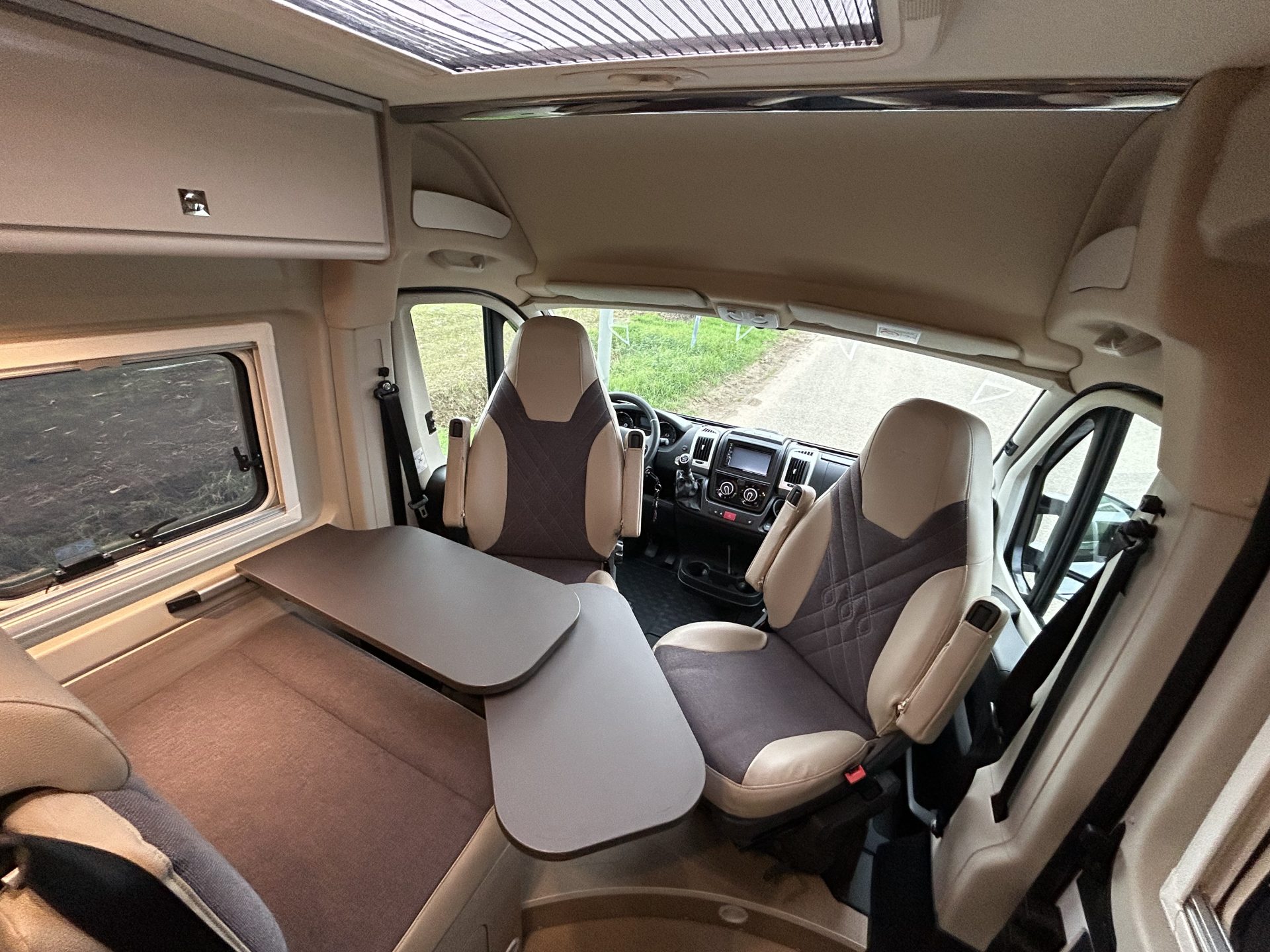 De brede toegangsdeur geeft direct een gevoel van ruimte. De royale indeling van de Campeo 540 biedt optimaal comfort. Dankzij de halve treinzit, de uitschuifbare tafel en draaibare cabinestoelen is er een ruime en gezellige zithoek gecreëerd. Geschikt voor 4 personen.