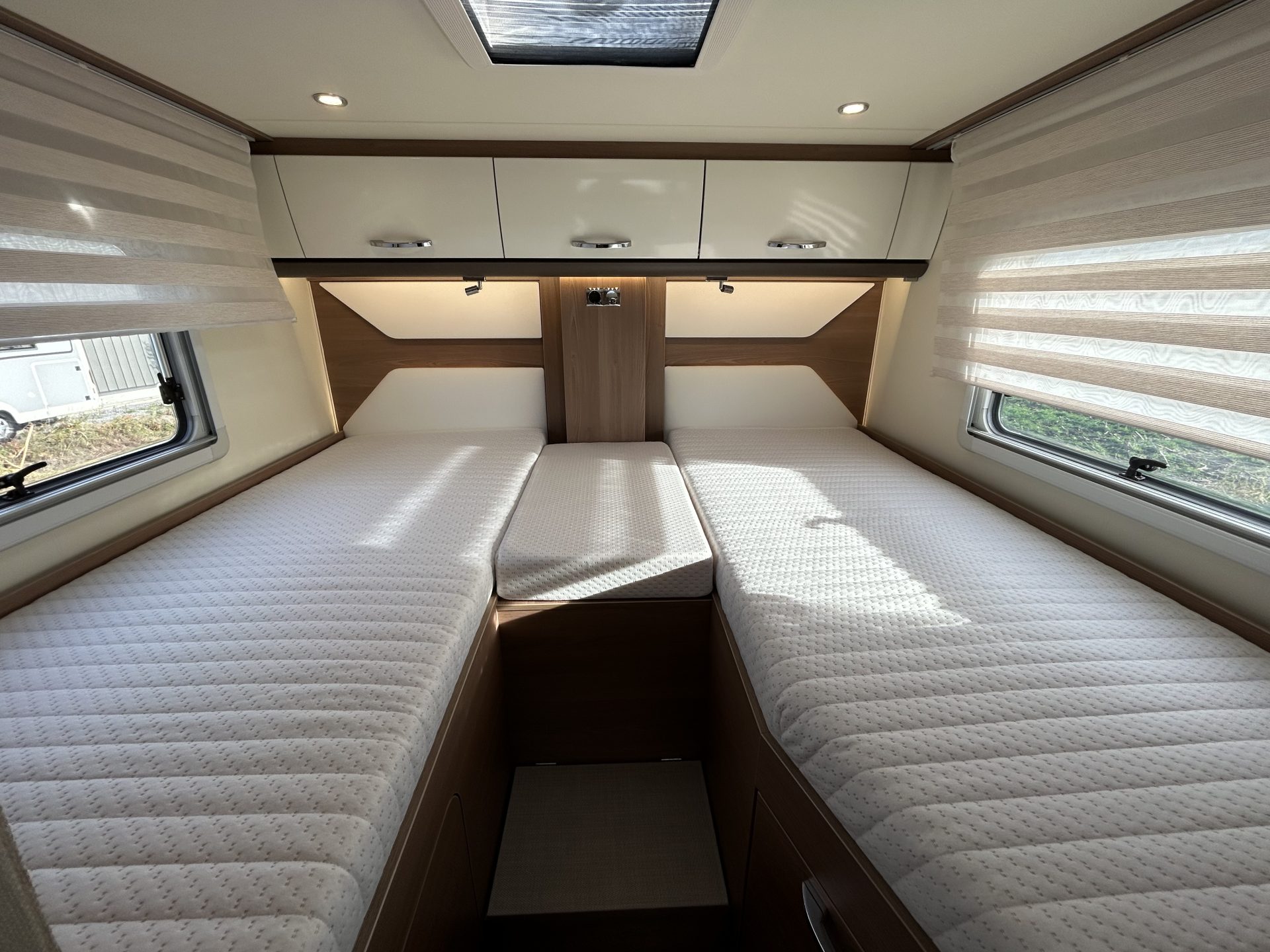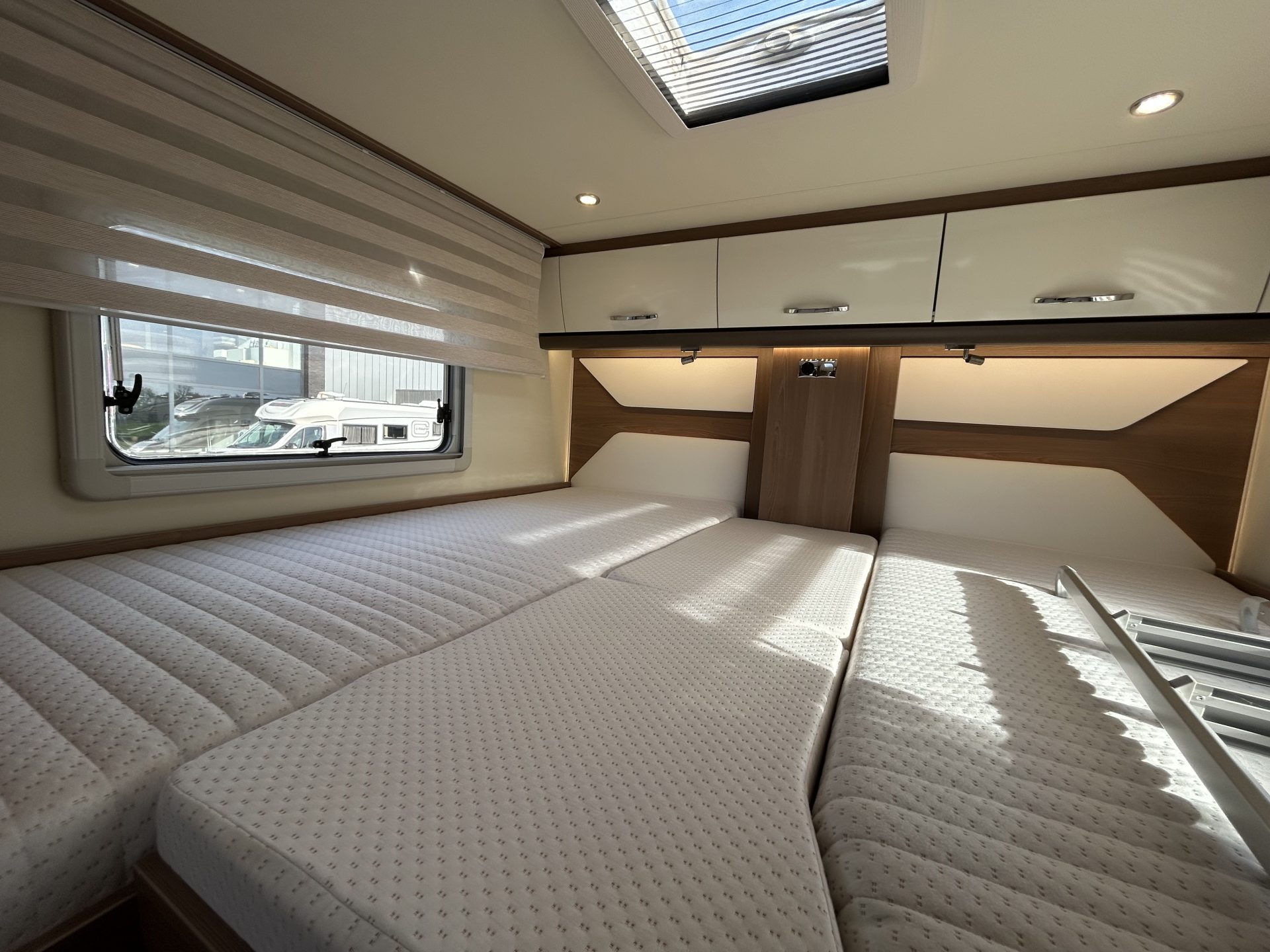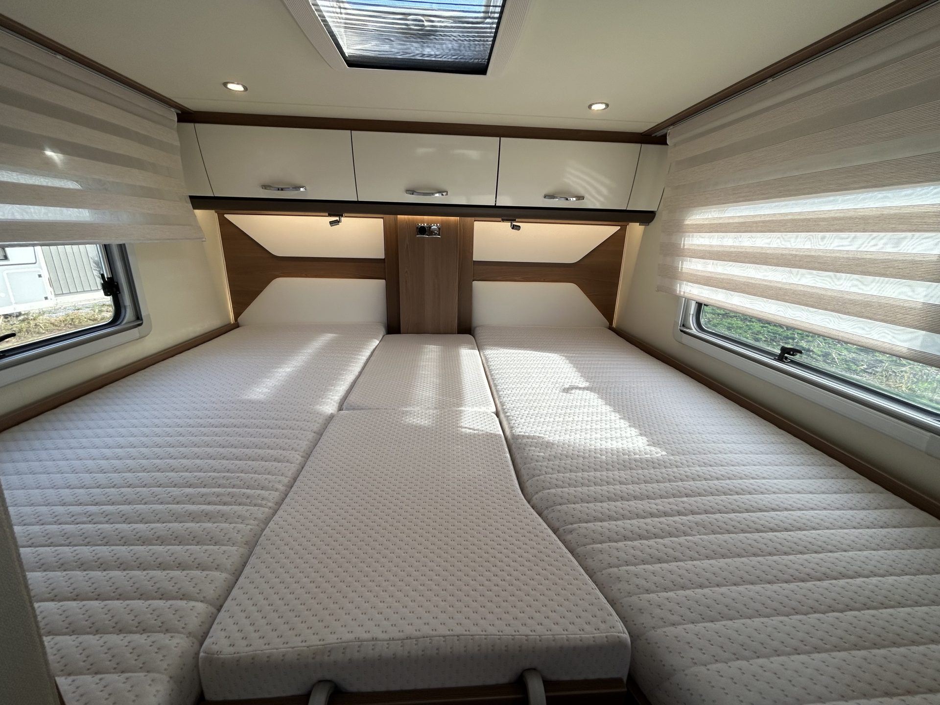 De slaapruimte is ontworpen voor een goede nachtrust, zodat je na een dag vol avontuur weer helemaal uitgerust bent. De ruime lengtebedden zijn voorzien van nieuwe matrassen voor extra comfort en kunnen eenvoudig worden omgebouwd tot één groot tweepersoonsbed.