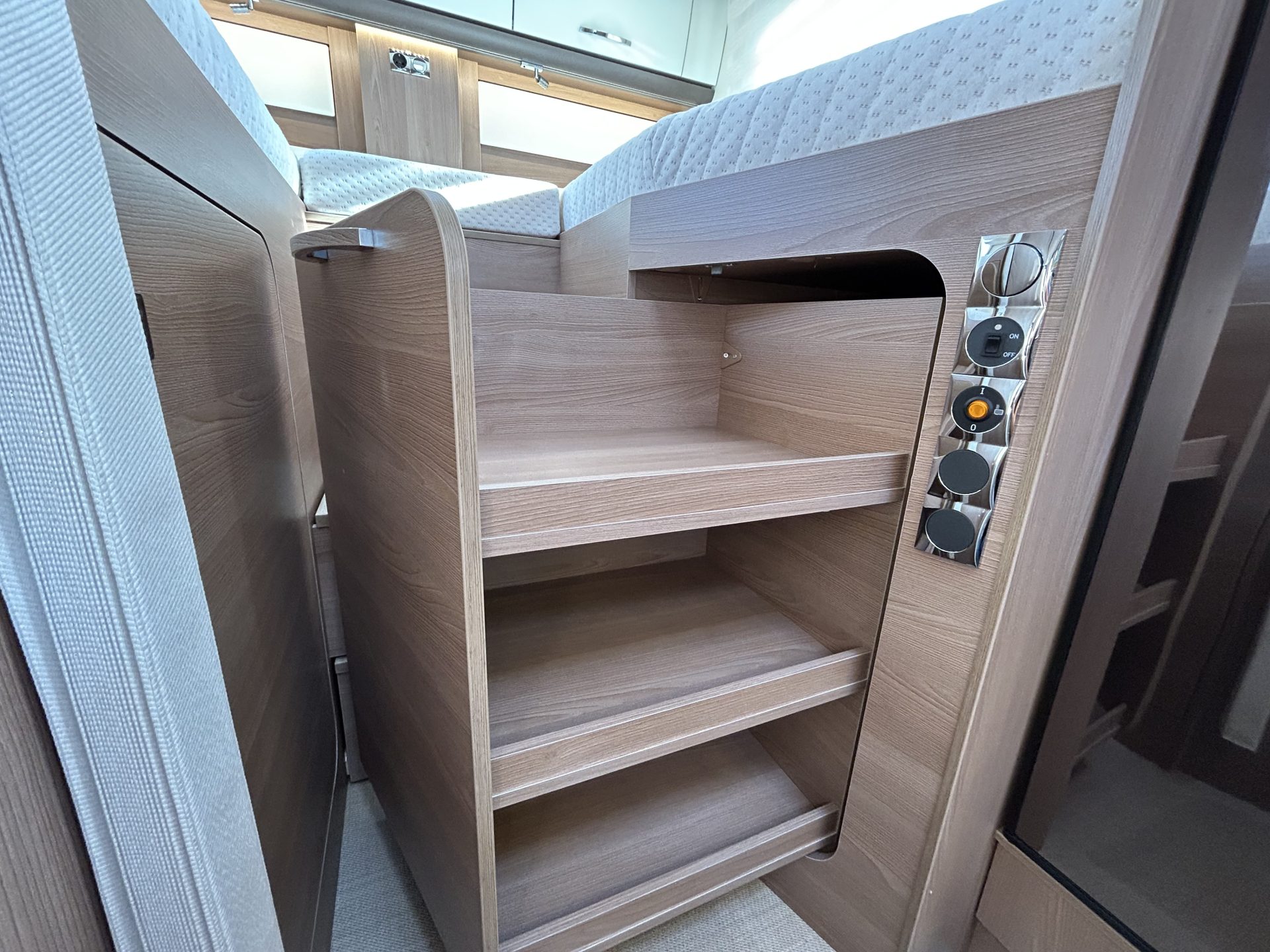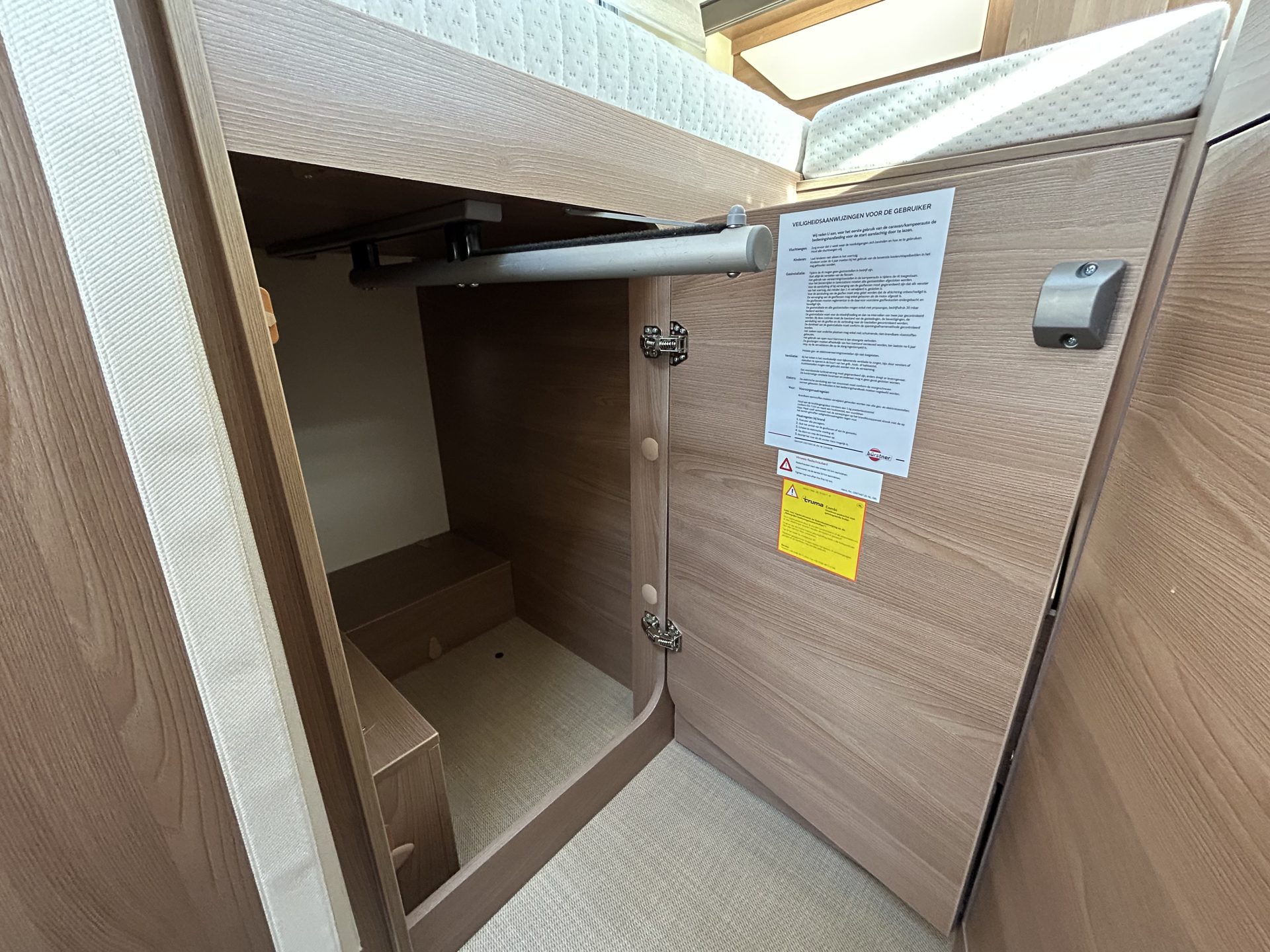 Onder de bedden bevindt zich extra opbergruimte, en naast het bed zijn stopcontacten en USB-aansluitingen aanwezig. De dinettetafel kan worden omgebouwd tot een derde slaapplaats.