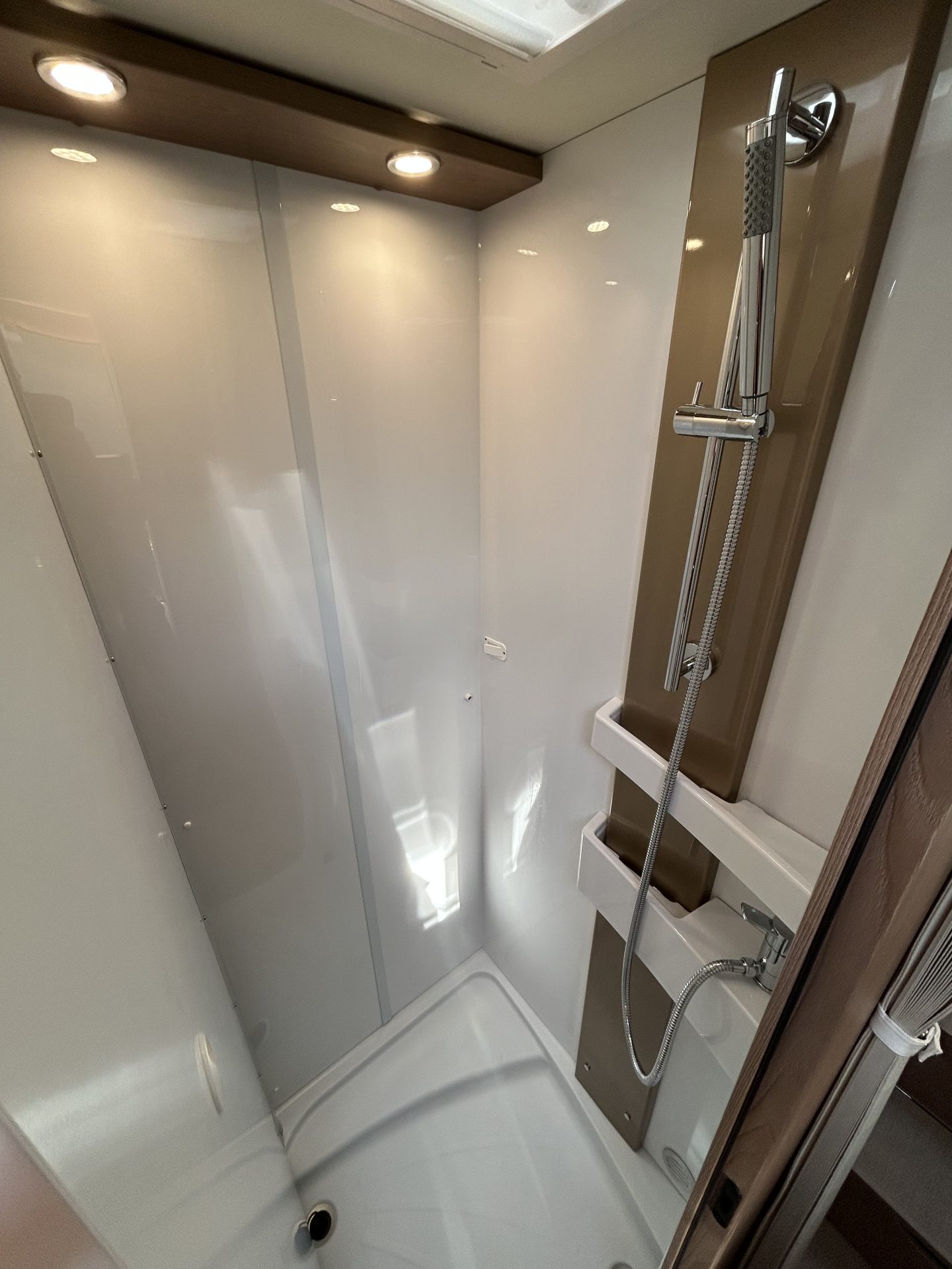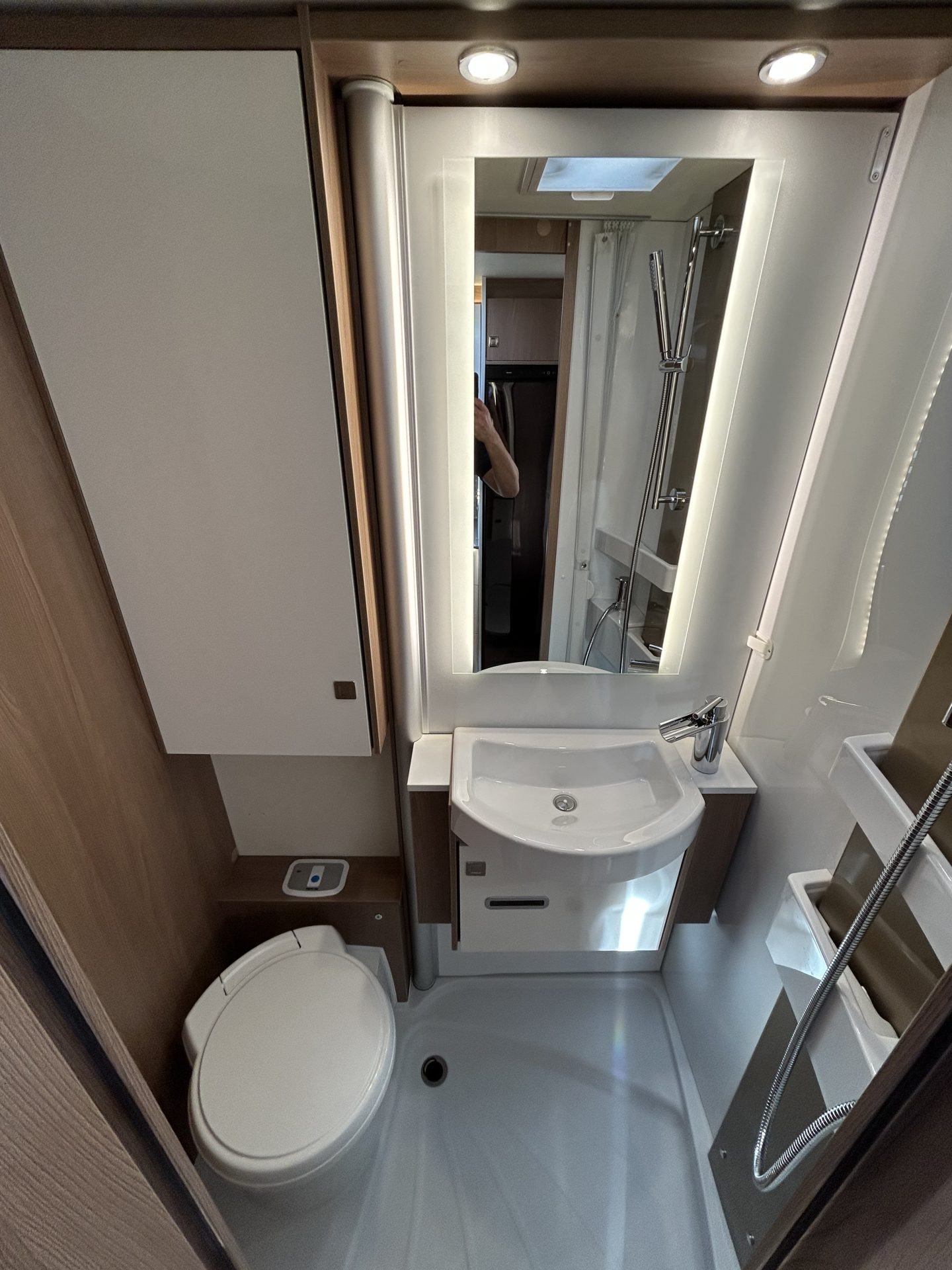 Ook de ruime toilet- en doucheruimte biedt alle comfort. De royale douche, in combinatie met de aparte toilet- en wasruimte, zorgt ervoor dat je je onderweg in alle rust kunt opfrissen. De Truma-boiler garandeert voldoende warm water – ook tijdens het douchen – zodat je je altijd thuis voelt, waar je ook bent. En met een nieuwe toiletset is de camper klaar voor nieuwe avonturen.