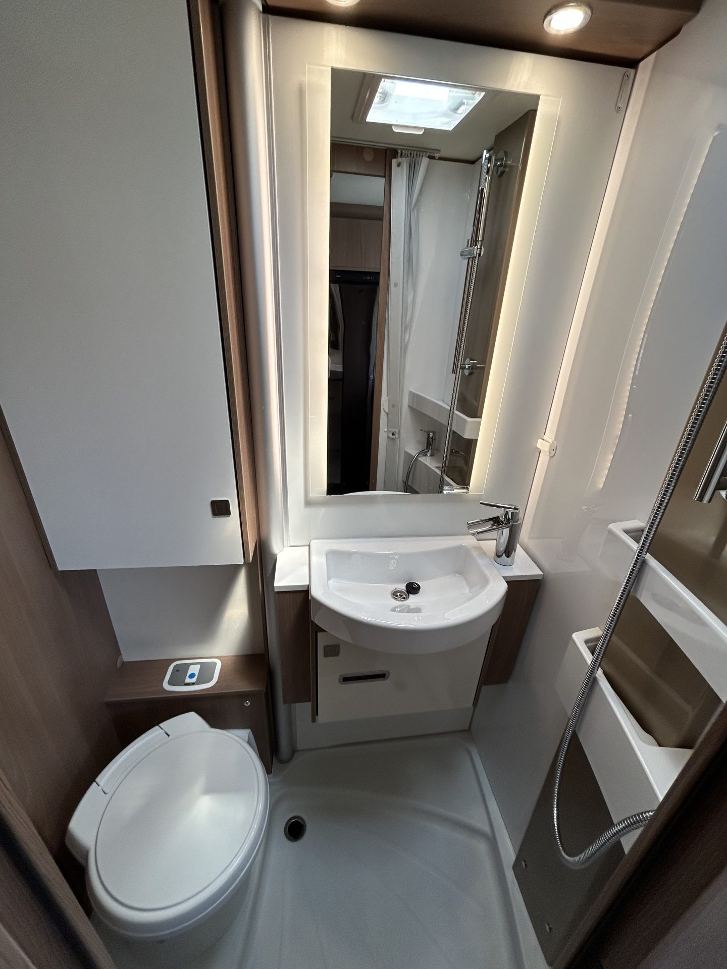 Je camper is standaard uitgerust met een nieuwe toiletset, inclusief toiletbril en cassette. Dit garandeert optimale hygiëne en comfort, zodat je zorgeloos kunt genieten van je reis!