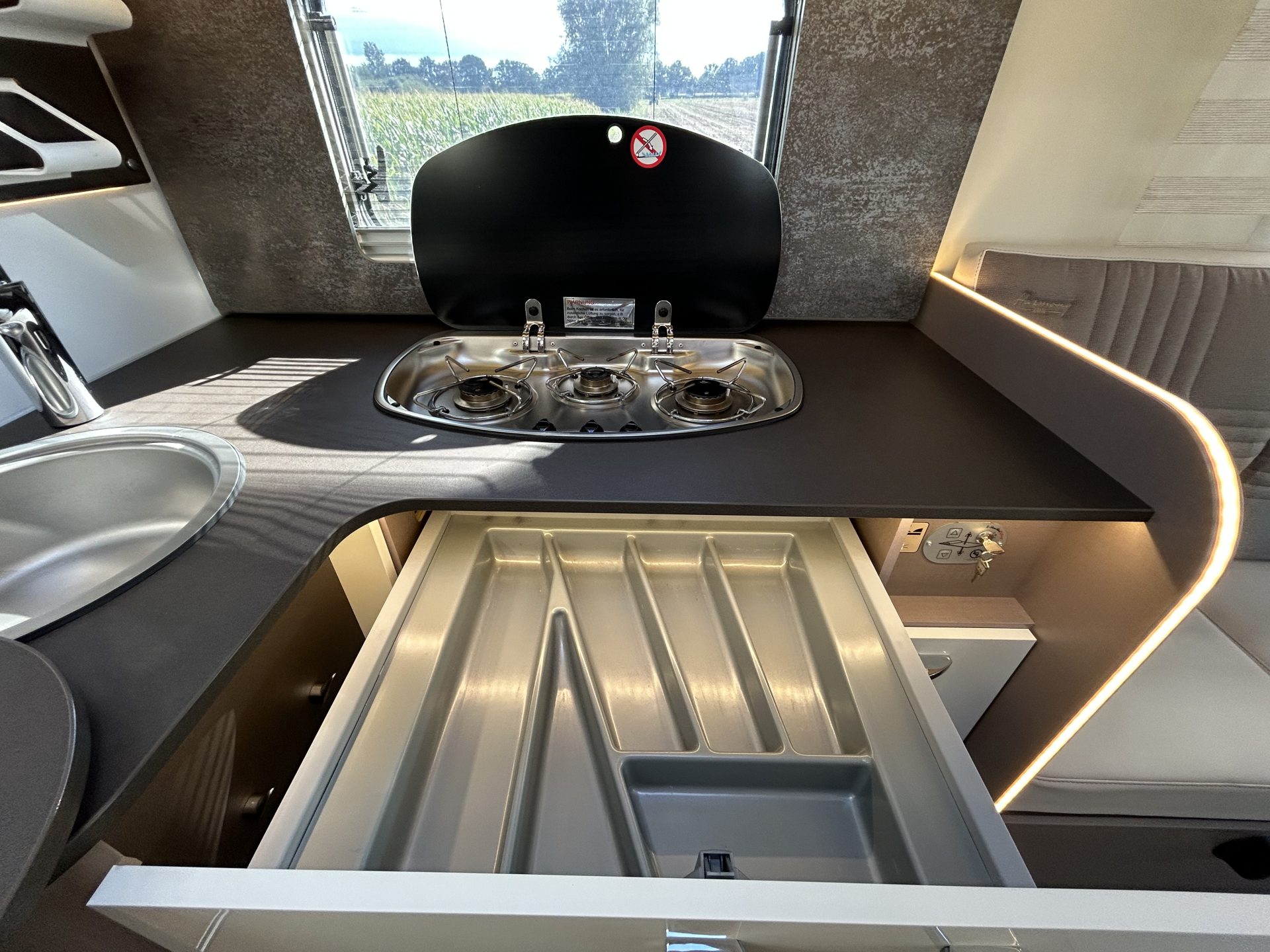 Alles is ontworpen om koken comfortabel en overzichtelijk te maken, zelfs onderweg.