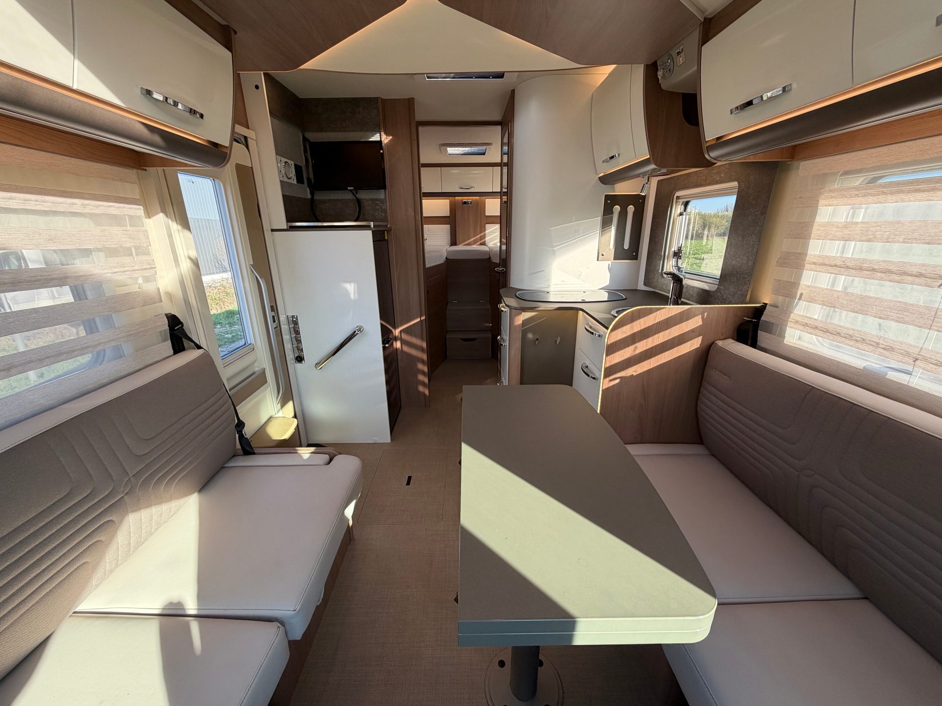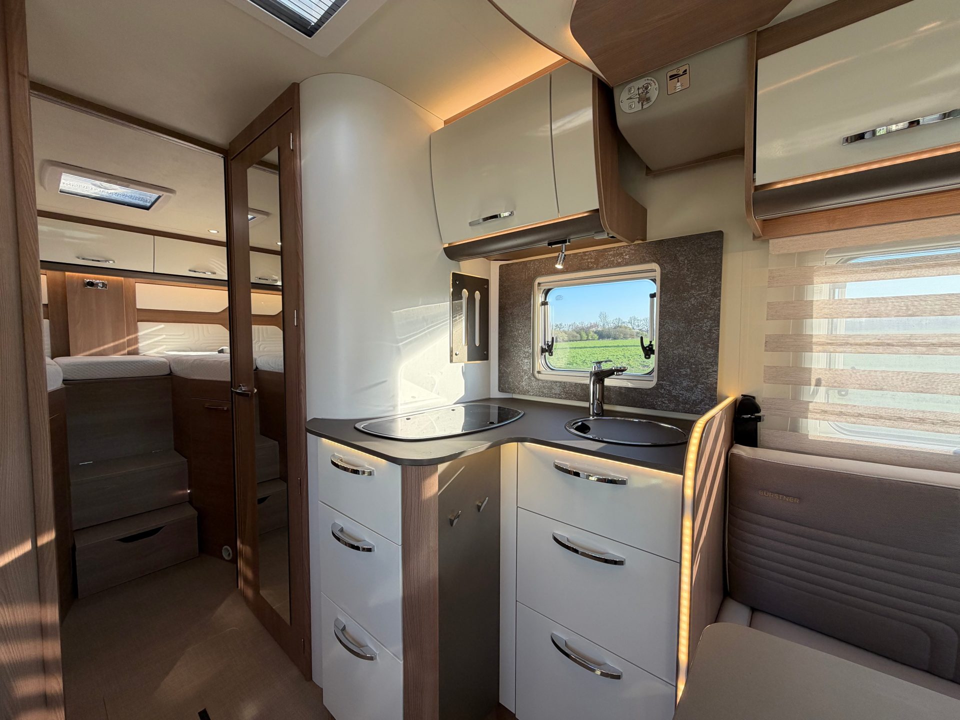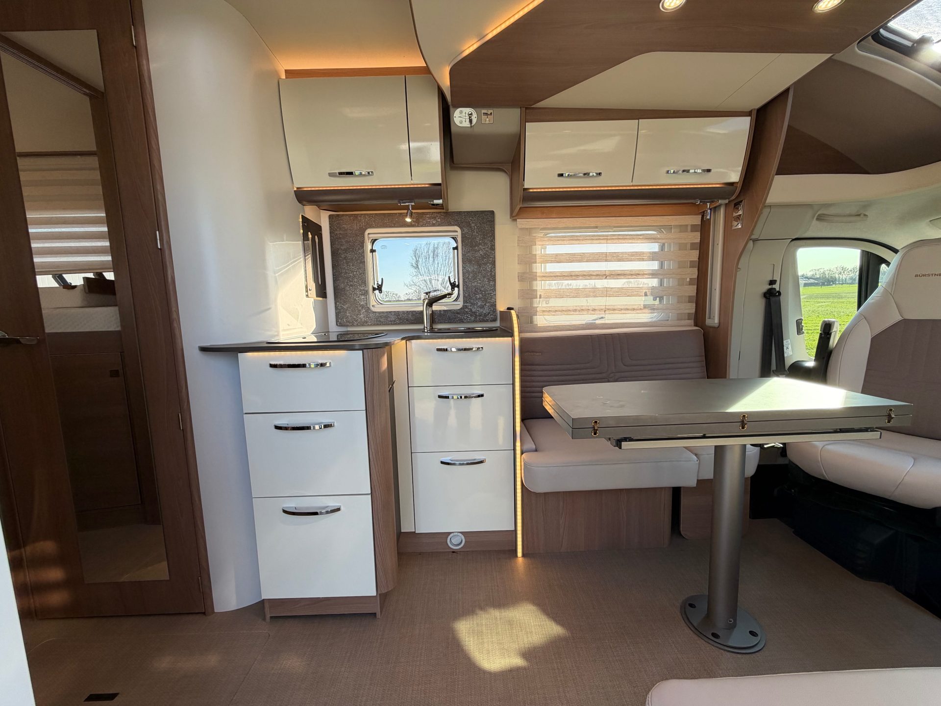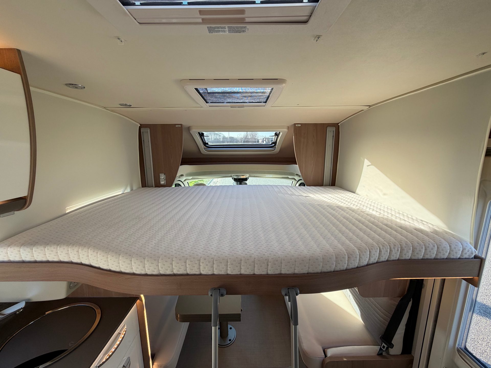 Deze uitvoering behoort tot de luxe lijn van Bürstner en is voorzien van een dubbele vloer met uitstekende isolatie en extra opbergruimte. Dankzij de volledig vlakke vloer geniet je van optimaal gebruiksgemak zonder opstapjes.