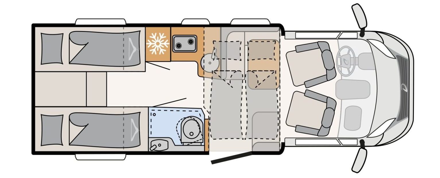 * De getoonde camper kan afwijken van het uiteindelijke model. Je krijgt altijd een vergelijkbare camper in dezelfde klasse en met gelijkwaardige voorzieningen.