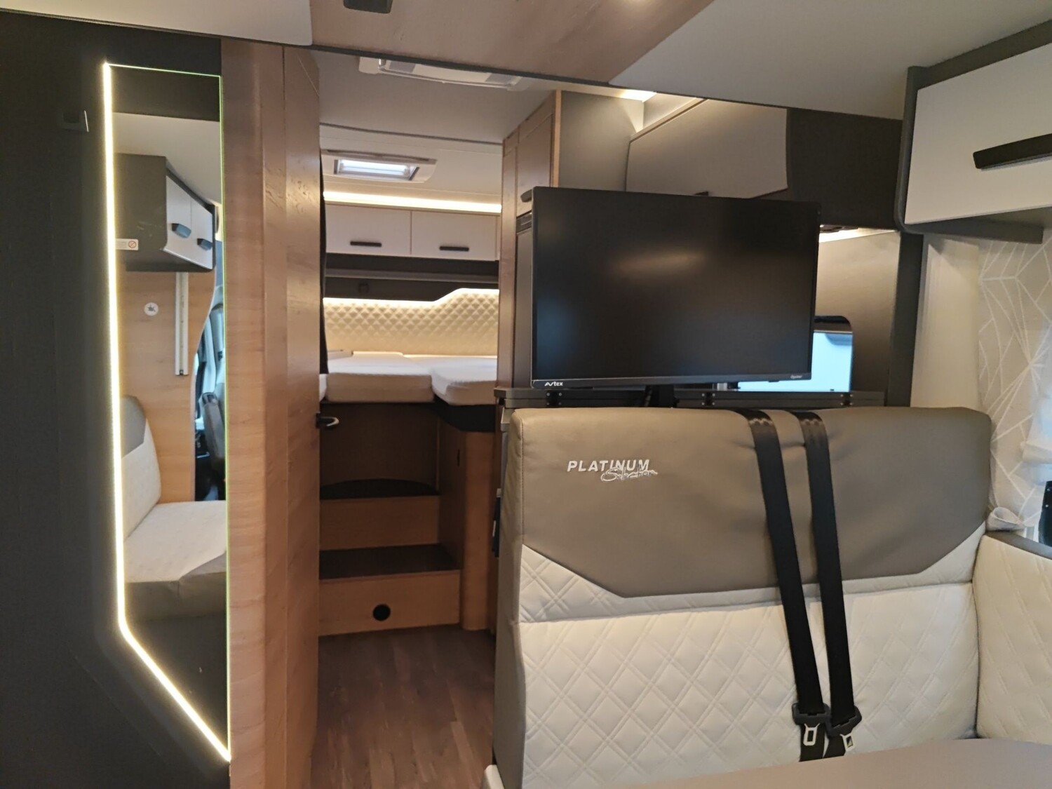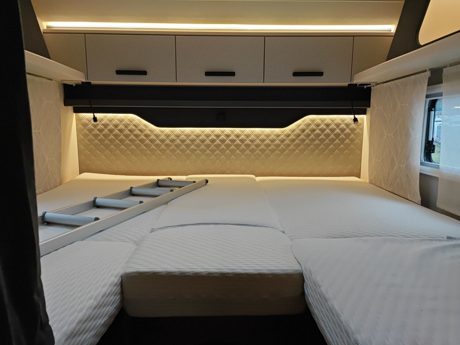 Een ruime camper huren voor een comfortabele camperreis? De KNAUS L!VE WAVE PLATINUM SELECTION 700 MEG is de ideale camper voor wie comfort en ruimte zoekt. Achterin vind je twee enkele bedden die om te bouwen zijn tot één groot bed, plus een elektrisch hefbed voor twee personen. De ruime zit, grote garage en moderne keuken en badkamer bieden alle gemakken voor een zorgeloze reis. Daarnaast is de camper uitgerust met vele extra’s waaronder een airconditioning in het woongedeelte, fietsdrager met liftsysteem én een Smart TV, zodat je onderweg altijd kunt ontspannen in een comfortabele en luxe omgeving.