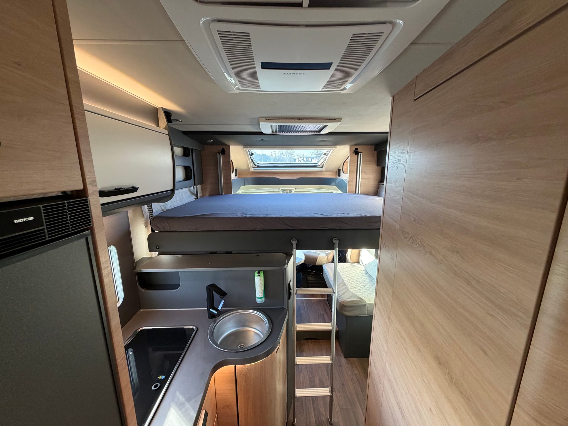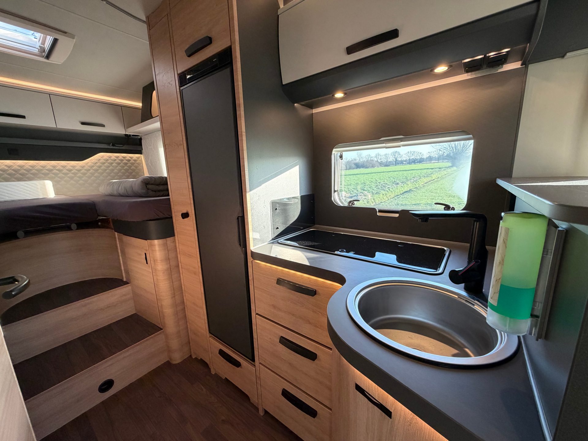Een luxe camper huren voor vakantie of een comfortabele roadtrip? De Knaus L!VE WAVE PLATINUM SELECTION 700 MEG is de perfecte keuze! Deze luxe halfintegraal camper biedt alles wat je nodig hebt voor een zorgeloze vakantie of avontuurlijke reis. Achterin vind je twee enkele bedden, die eenvoudig om te bouwen zijn tot een groot bed, plus een elektrisch hefbed voor twee personen. De ruime zit en XXL-garage bieden volop opbergruimte, terwijl de moderne keuken en badkamer voor extra comfort zorgen. Daarnaast is de camper uitgerust met airconditioning in het woongedeelte, fietsdrager met liftsysteem en Smart TV, zodat je overal geniet van een aangename en ontspannen reis.