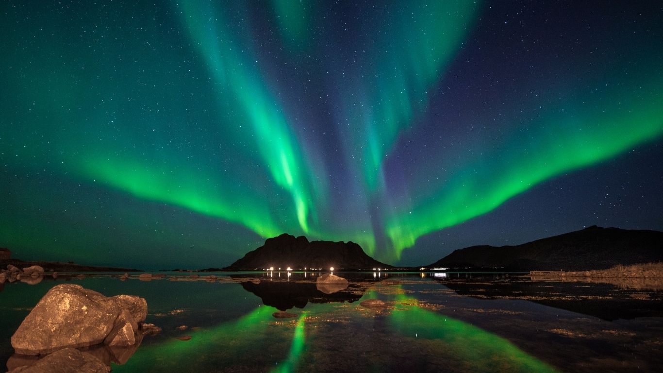 Heb je extra tijd (5–7 dagen)? Vervolg de reis via de E6 richting Bodø en neem de ferry naar de Lofoten – ruige bergen, witte stranden en felblauwe baaien.