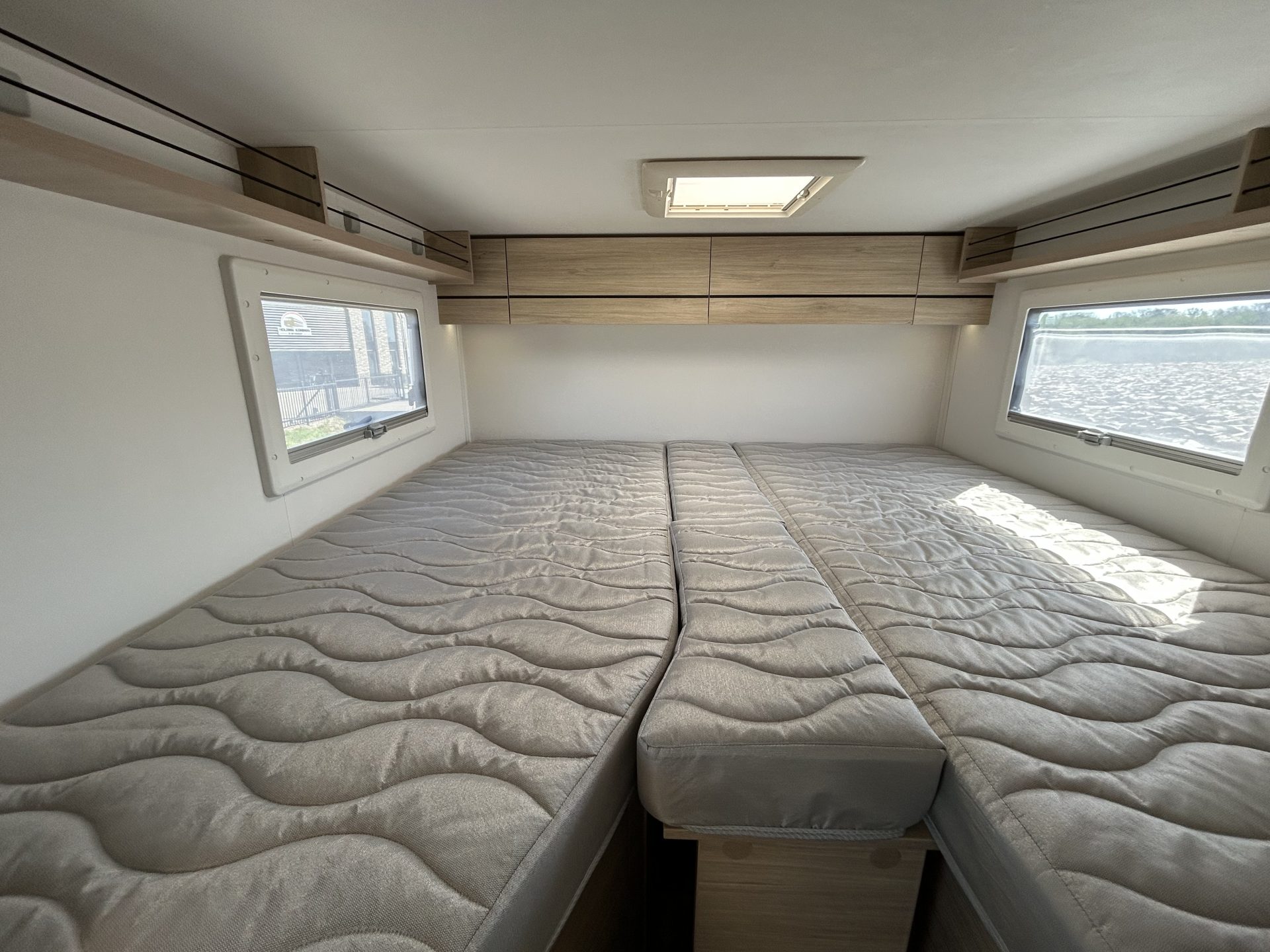 Deze camper wordt standaard geleverd met hoogwaardige Dutch Camper Center Sleep Select matrassen. Je hebt de keuze tussen onze comfortabele kwaliteitsmatrassen of de mogelijkheid om tegen een meerprijs te upgraden naar een matras die is afgestemd op jouw gewenste hardheid en afwerking. Zo geniet je van optimaal slaapcomfort, perfect aangepast aan jouw persoonlijke voorkeuren.