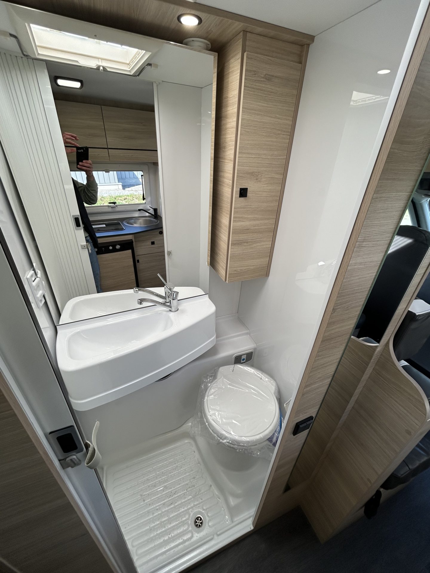 Je camper is standaard uitgerust met een nieuwe toiletset, inclusief toiletbril en cassette. Dit garandeert optimale hygiëne en comfort, zodat je zorgeloos kunt genieten van je reis!