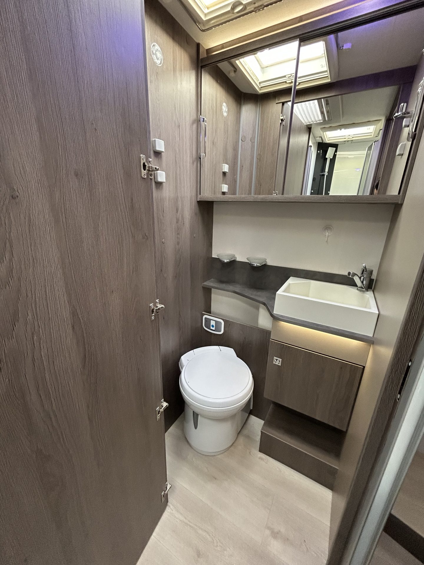 Je camper is standaard uitgerust met een nieuwe toiletset, inclusief toiletbril en cassette. Dit garandeert optimale hygiëne en comfort, zodat je zorgeloos kunt genieten van je reis!