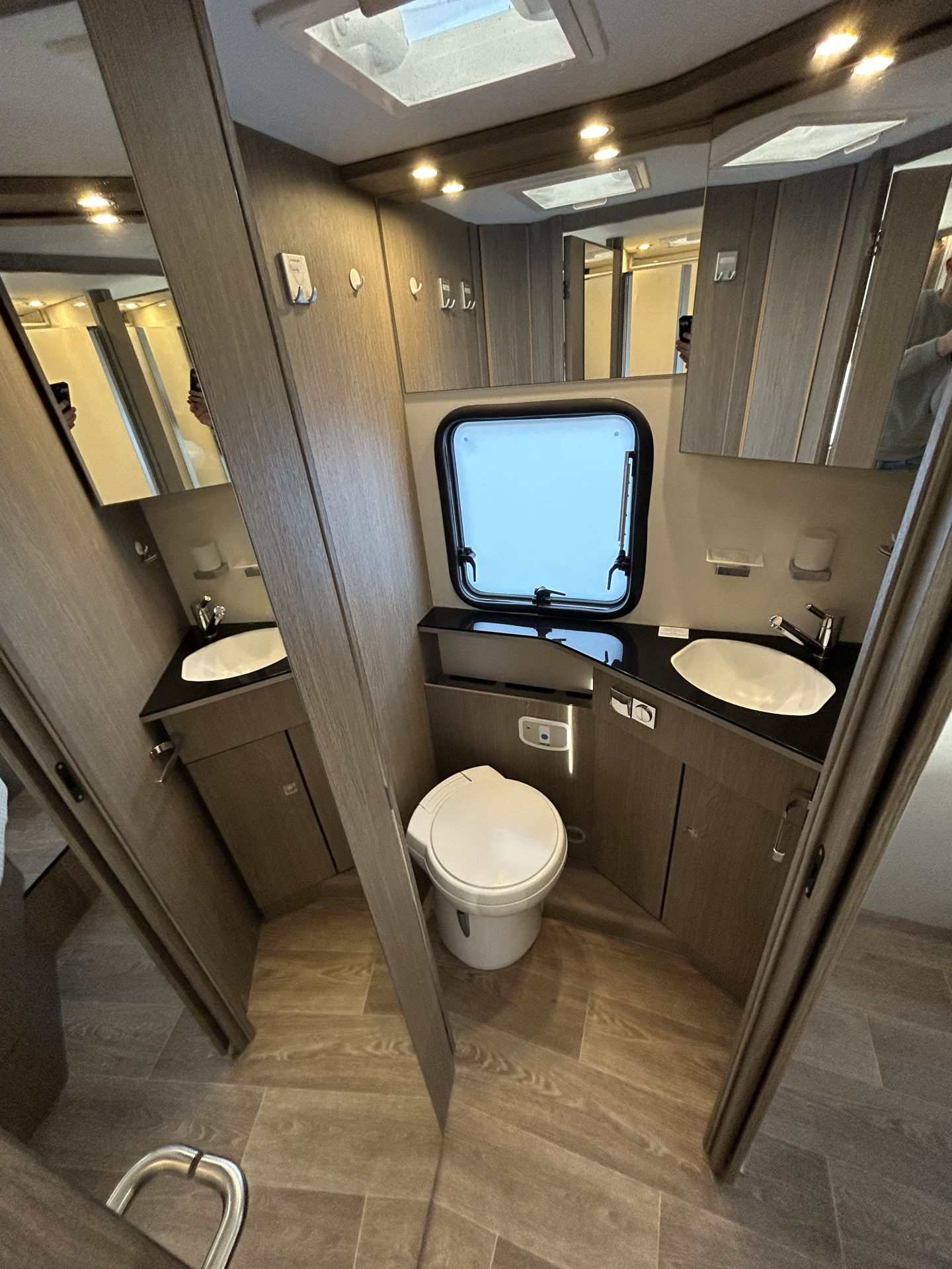 Je camper is standaard uitgerust met een nieuwe toiletset, inclusief toiletbril en cassette. Dit garandeert optimale hygiëne en comfort, zodat je zorgeloos kunt genieten van je reis!
