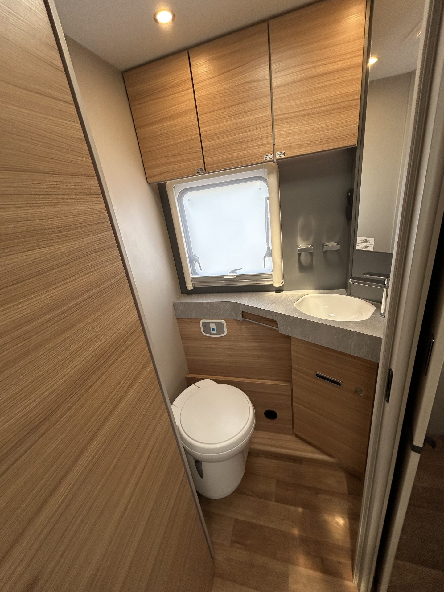 Je camper is standaard uitgerust met een nieuwe toiletset, inclusief toiletbril en cassette. Dit garandeert optimale hygiëne en comfort, zodat je zorgeloos kunt genieten van je reis!