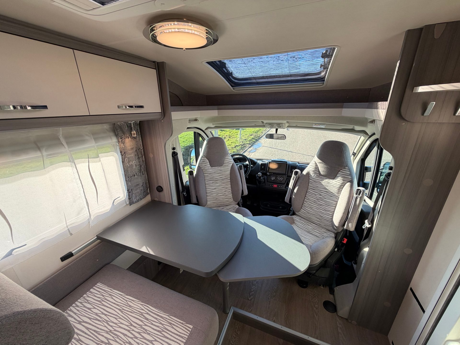 De brede toegangsdeur geeft direct een gevoel van ruimte. Dankzij de royale zithoek met comfortabele bank en draaibare cabinestoelen ontstaat een gezellige leefruimte met voldoende zitplaatsen voor iedereen. Achterin bevinden zich de ruime lengtebedden en een comfortabele sanitaire ruimte. De XXL garage biedt volop plaats voor fietsen, kampeeruitrusting en bagage.