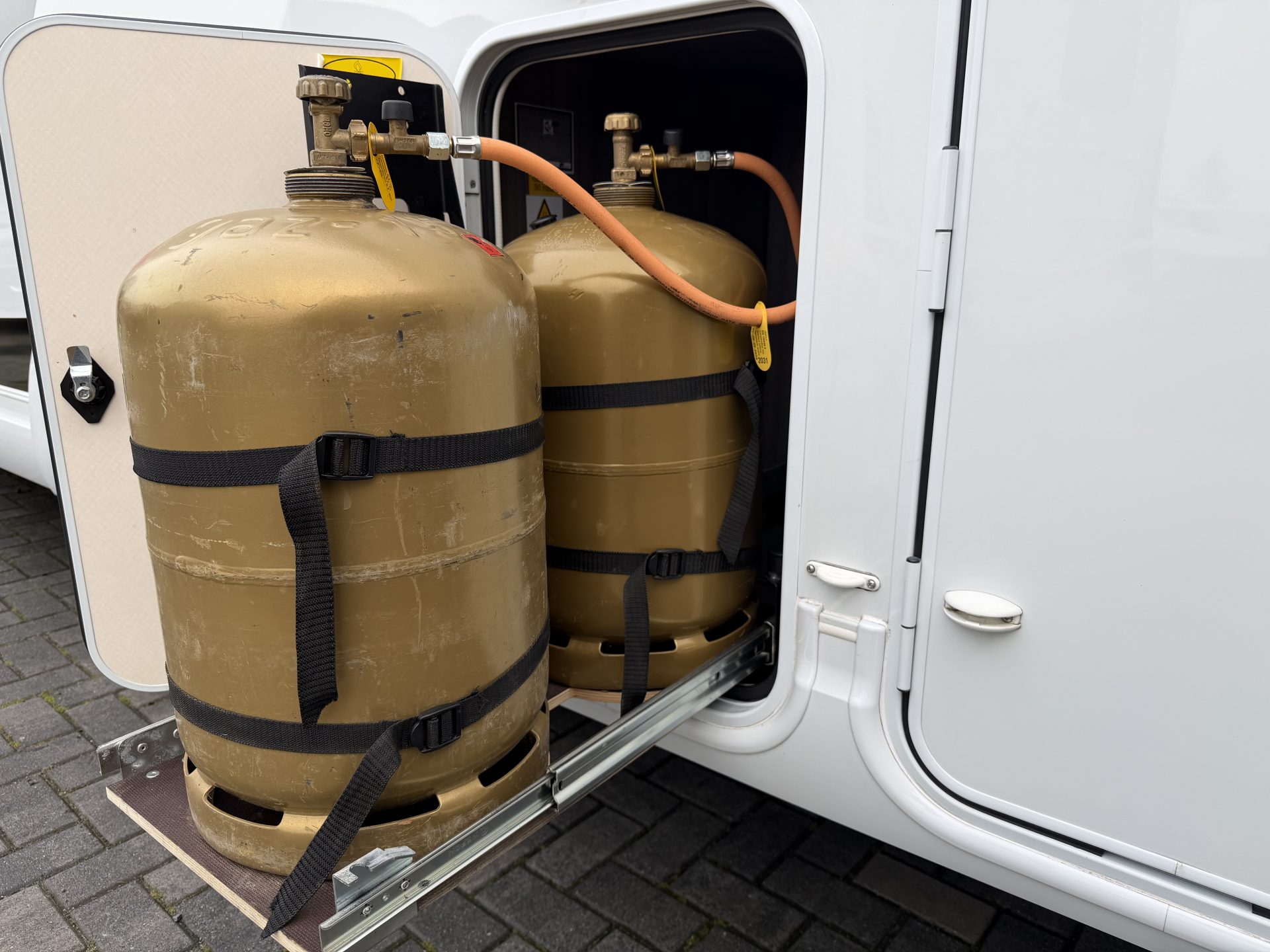- Uitschuifbaar plateau op stahoogte voor gasflessen