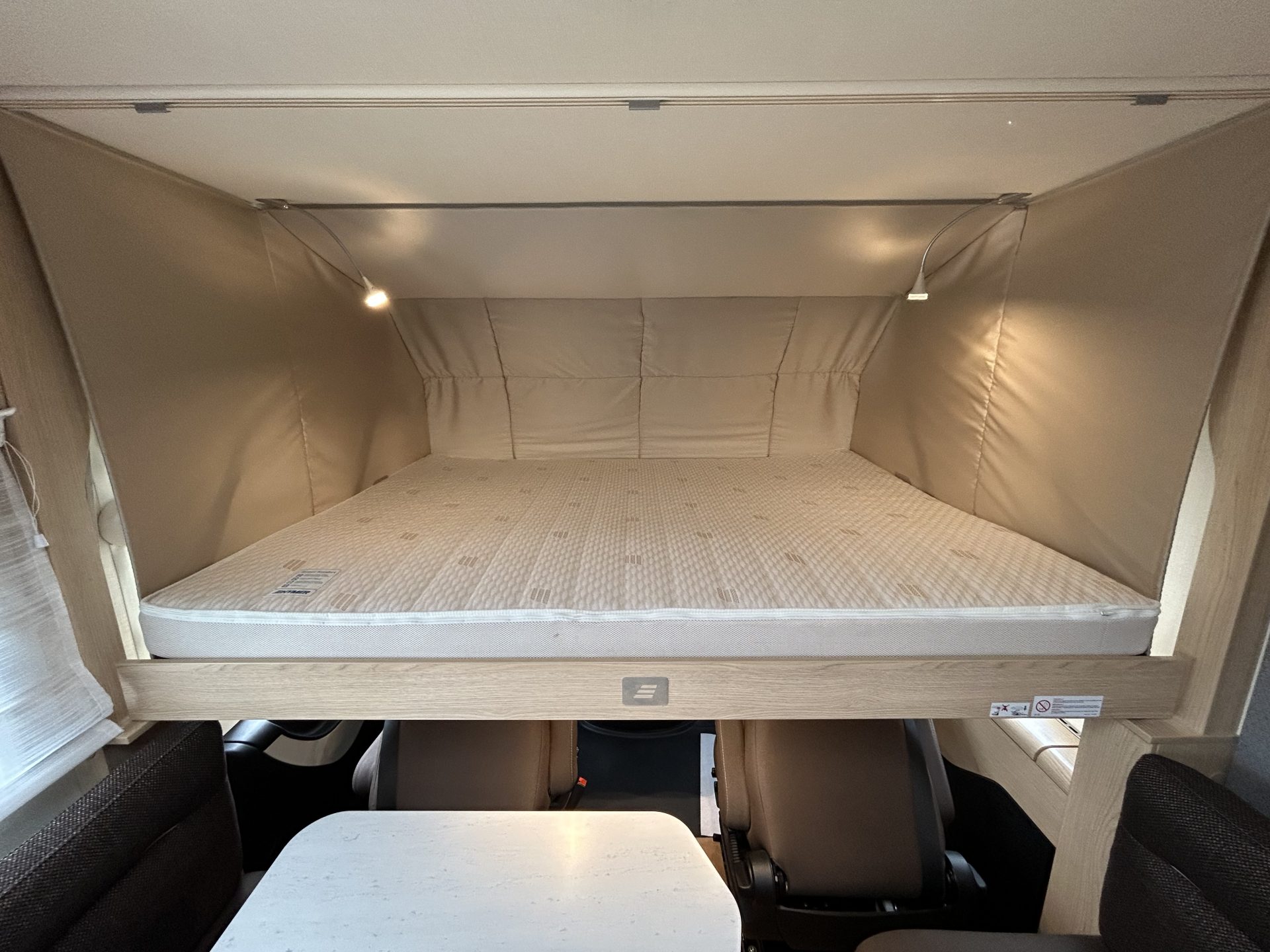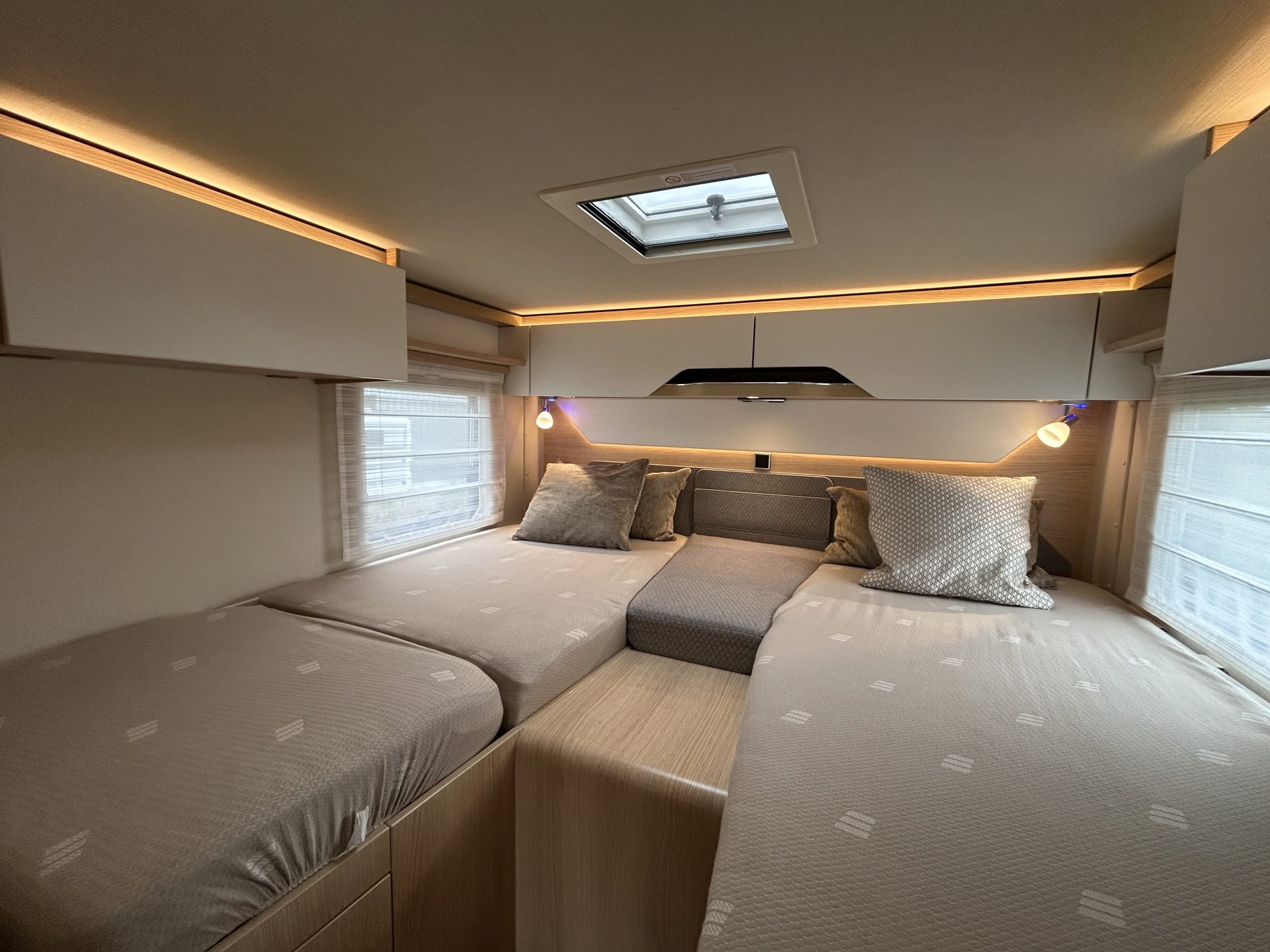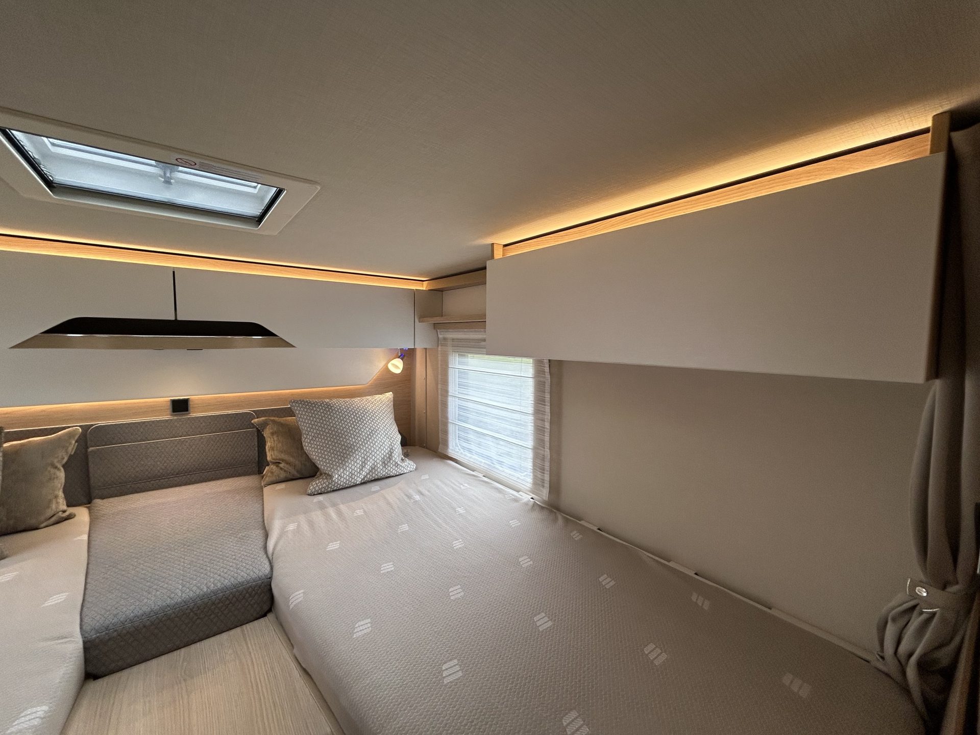 Er zijn lange lengtebedden achterin, een ruim tweepersoons hefbed in de cabine, en desgewenst kan een vijfde slaapplaats worden gecreëerd vanuit de dinette. Alle matrassen worden vernieuwd voor optimaal slaapcomfort. Dankzij de dubbele vloer en slimme kastruimte is er volop opbergcapaciteit. Het sfeervolle interieur is fraai afgewerkt met LED-verlichting.