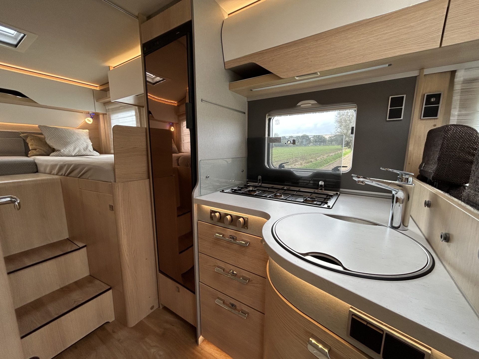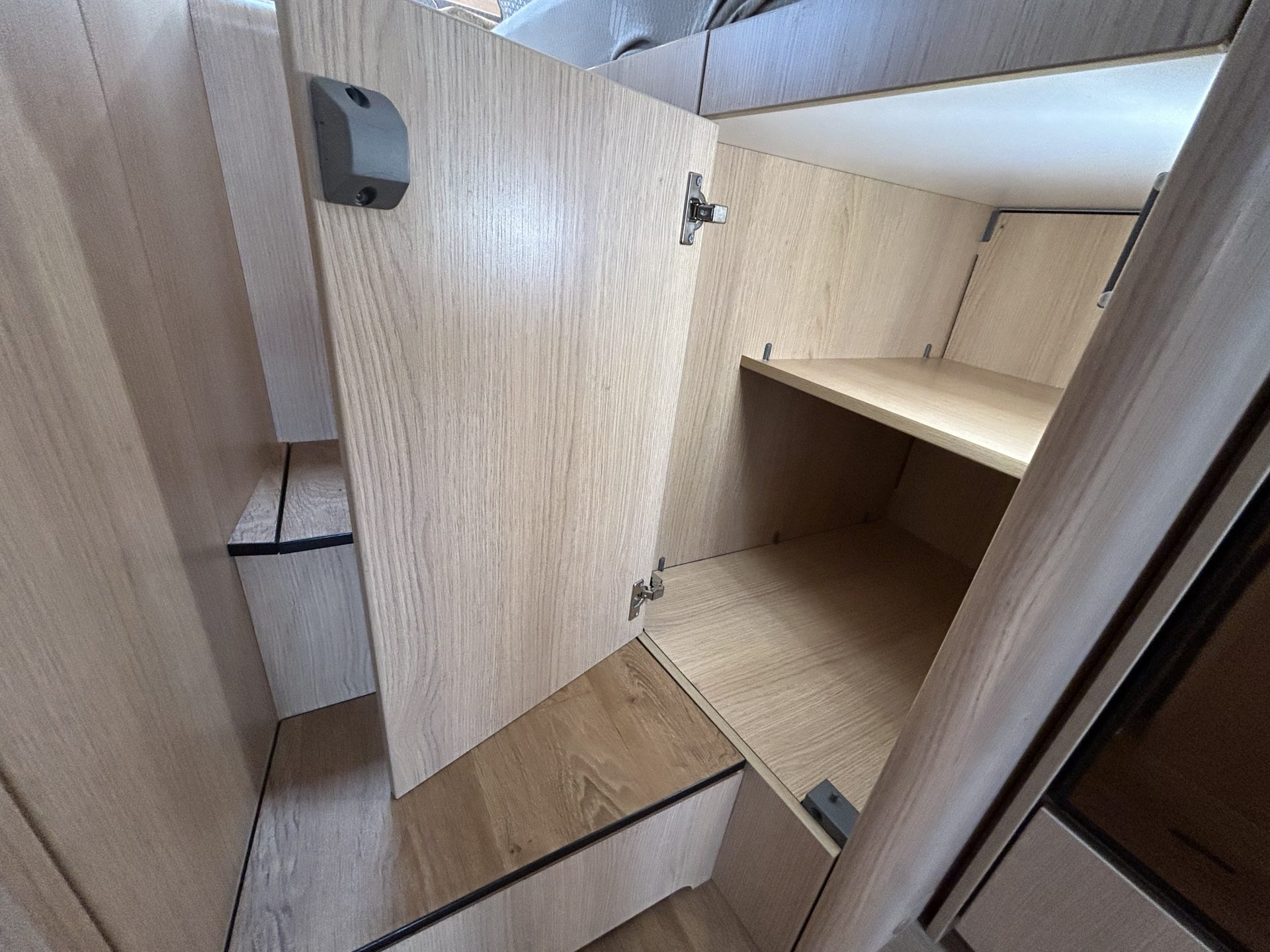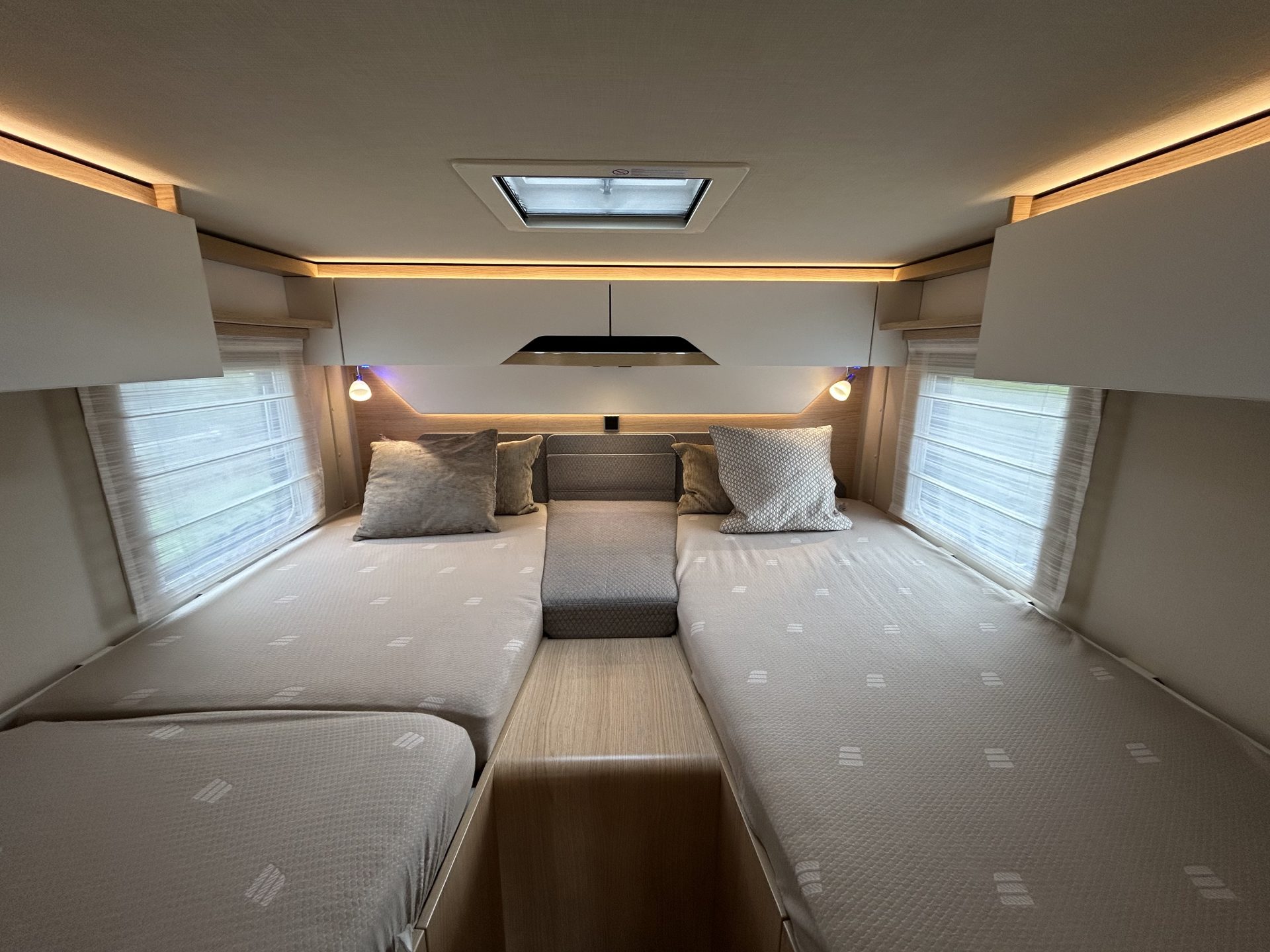 Er zijn lange lengtebedden achterin, een ruim tweepersoons hefbed in de cabine, en desgewenst kan een vijfde slaapplaats worden gecreëerd vanuit de dinette. Alle matrassen worden vernieuwd voor optimaal slaapcomfort. Dankzij de dubbele vloer en slimme kastruimte is er volop opbergcapaciteit. Het sfeervolle interieur is fraai afgewerkt met LED-verlichting.