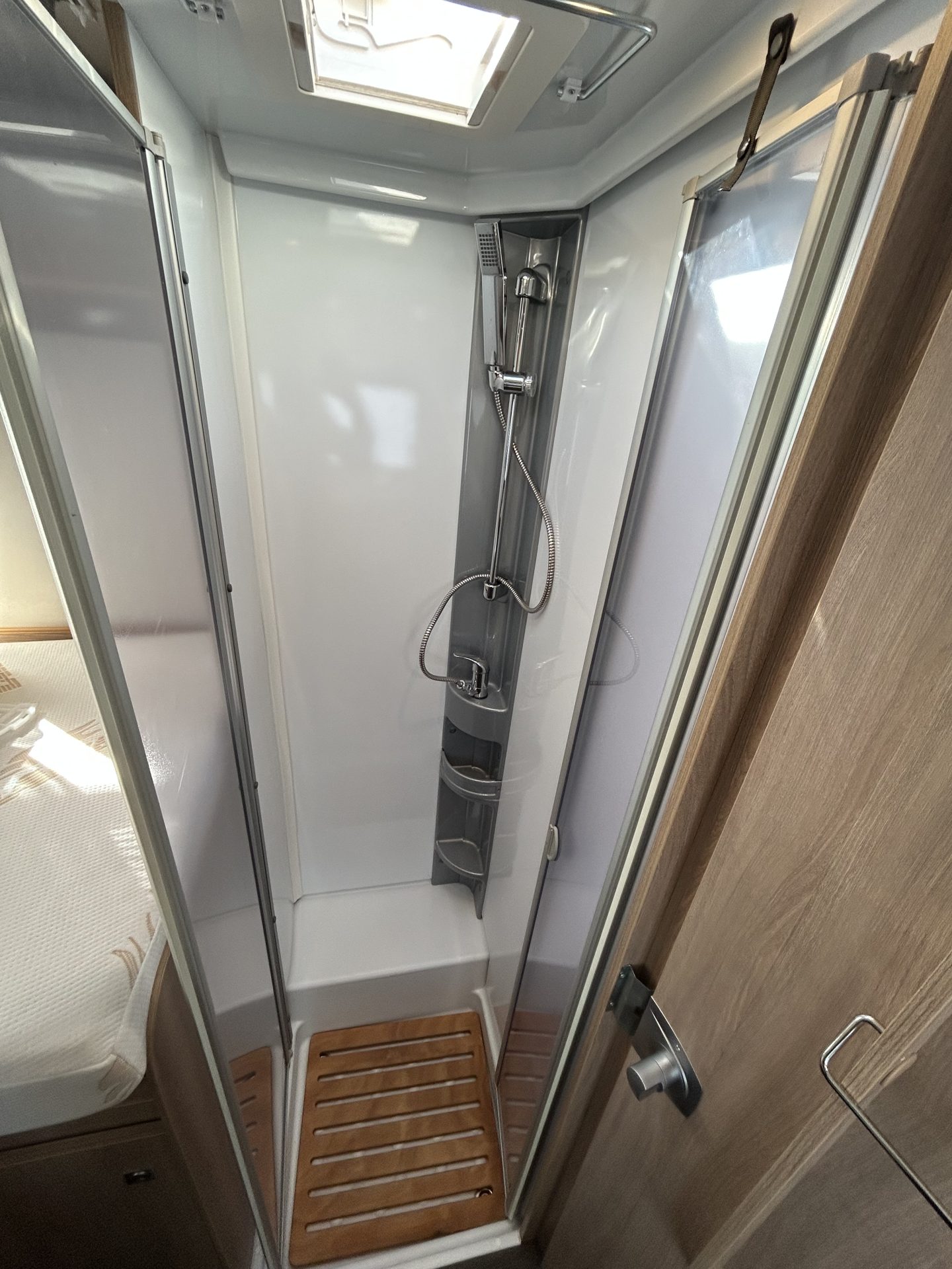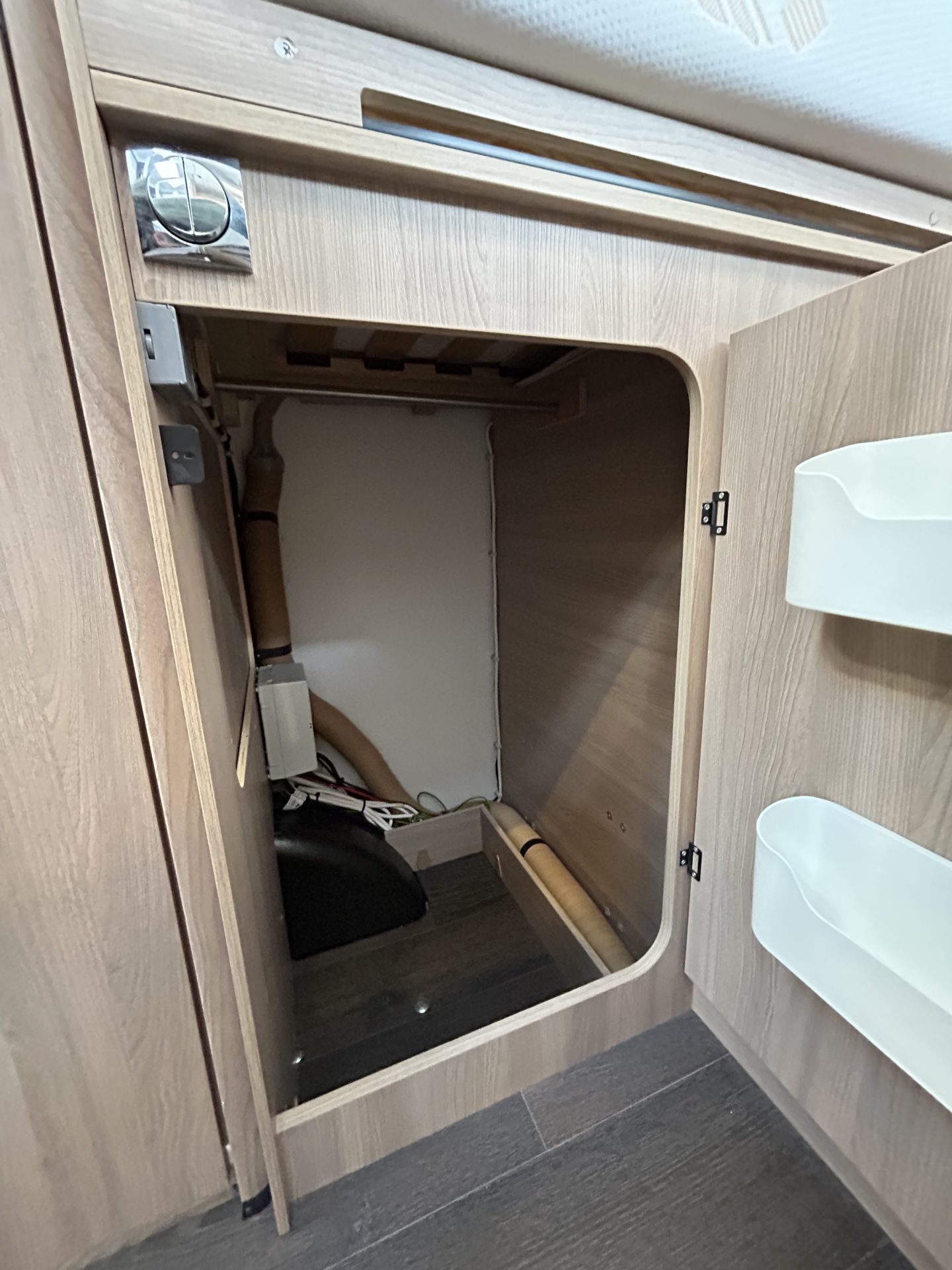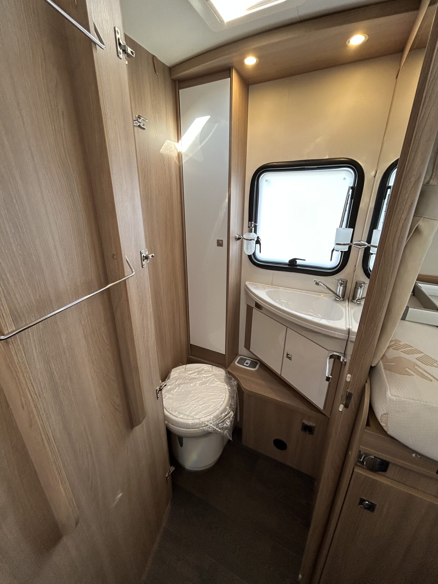 Je camper is standaard uitgerust met een nieuwe toiletset, inclusief toiletbril en cassette. Dit garandeert optimale hygiëne en comfort, zodat je zorgeloos kunt genieten van je reis!