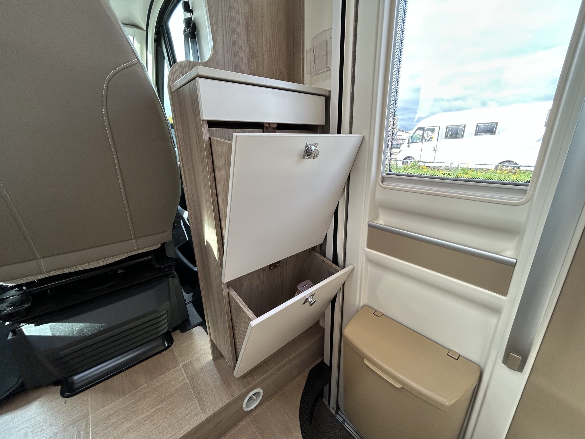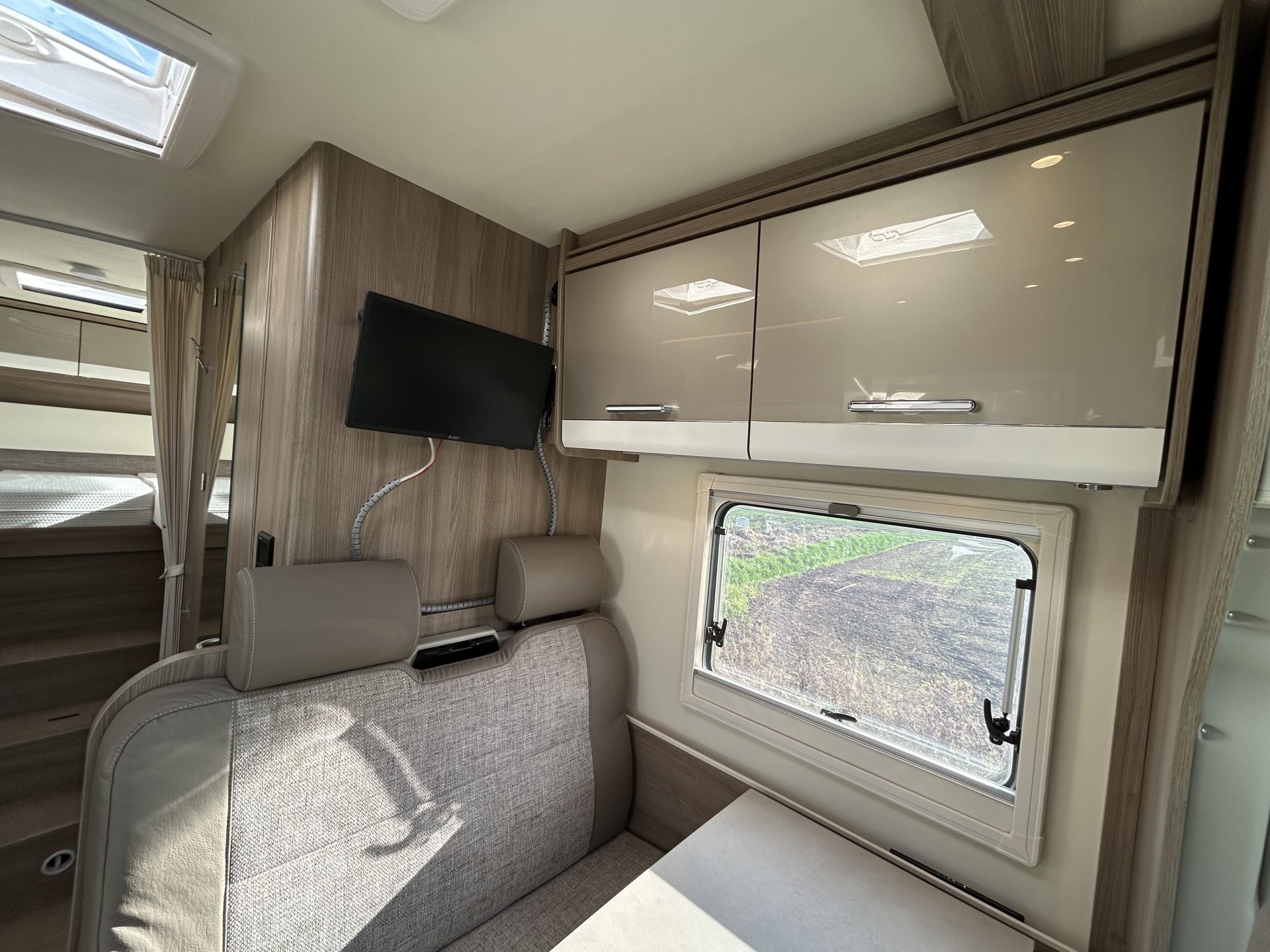 Bij binnenkomst via de extra brede toegangsdeur valt direct het gevoel van ruimte op. De royale zithoek met een brede bank en draaibare cabinestoelen biedt volop zitplaatsen en comfort. De indeling is praktisch én ruim: lengtebedden achterin, een centraal geplaatste keuken en een badkamer in het midden. De brede doorgang tussen keuken en badkamer zorgt voor extra bewegingsvrijheid. Daarnaast biedt de XXL verwarmde garage voldoende opbergruimte voor al uw bagage en vakantieuitrusting.