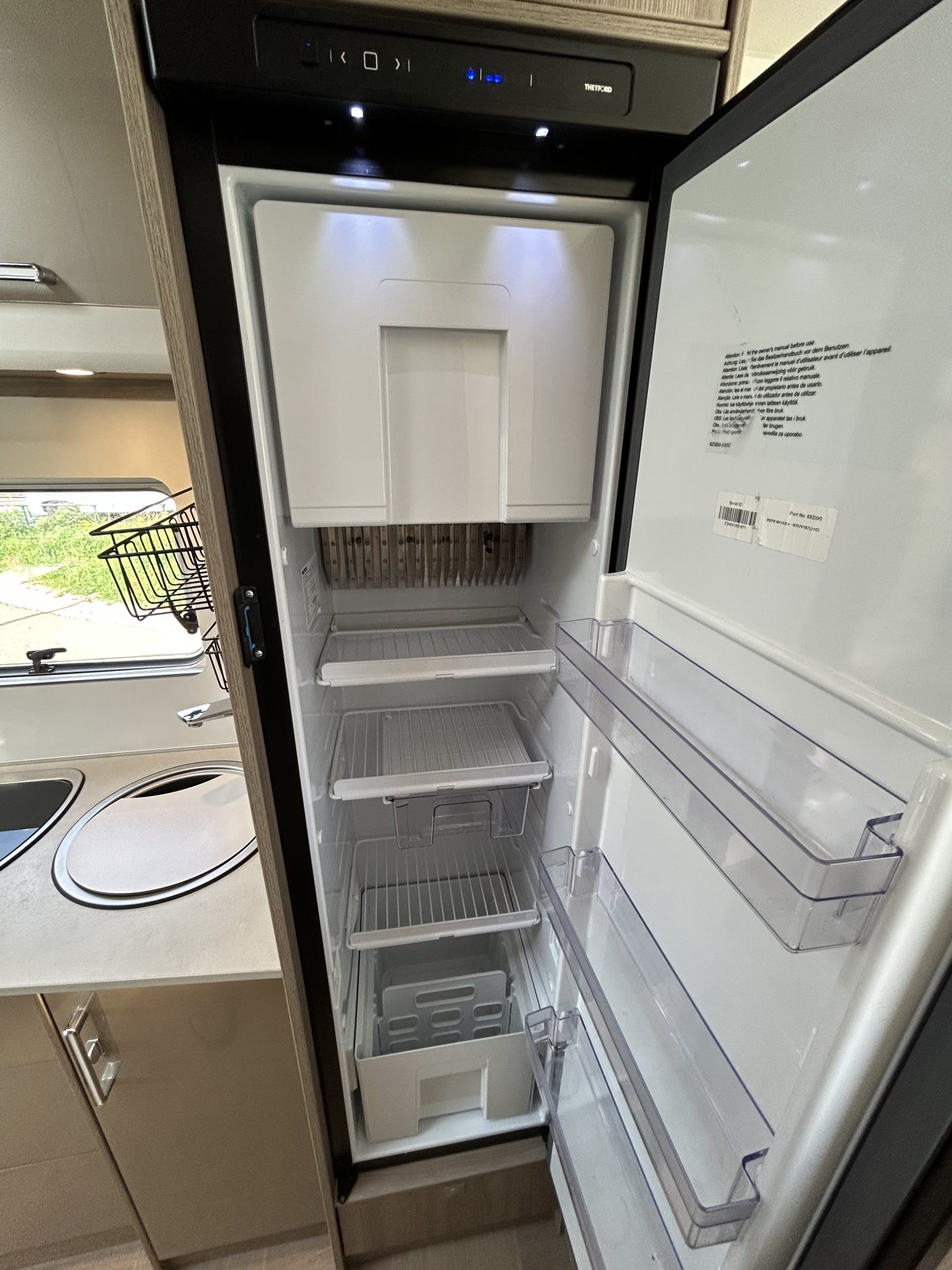 In de centraal geplaatste keuken is alles binnen handbereik. De ruime koelkast met apart vriesvak, diepe lades en een praktische voorraadkast bieden volop opbergruimte. De keuken is voorzien van een 3-pits gasstel en twee stopcontacten, zodat je ook elektrisch kunt koken of apparaten kunt aansluiten.