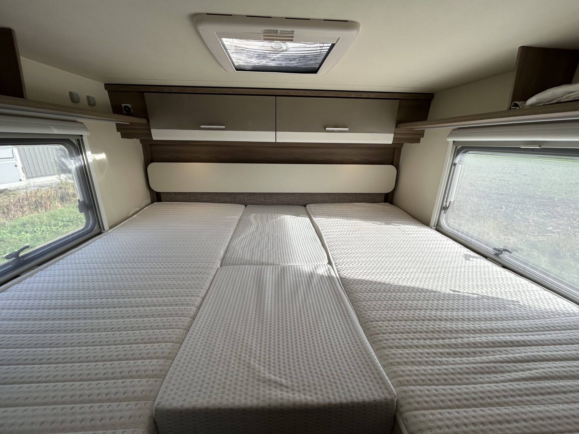 De camper is ontworpen voor een ontspannen nachtrust na een dag vol belevenissen. De comfortabele lengtebedden zijn uitgerust met nieuwe matrassen en kunnen desgewenst worden omgevormd tot één groot bed. Daarnaast is de dinette om te bouwen tot een derde slaapplaats.