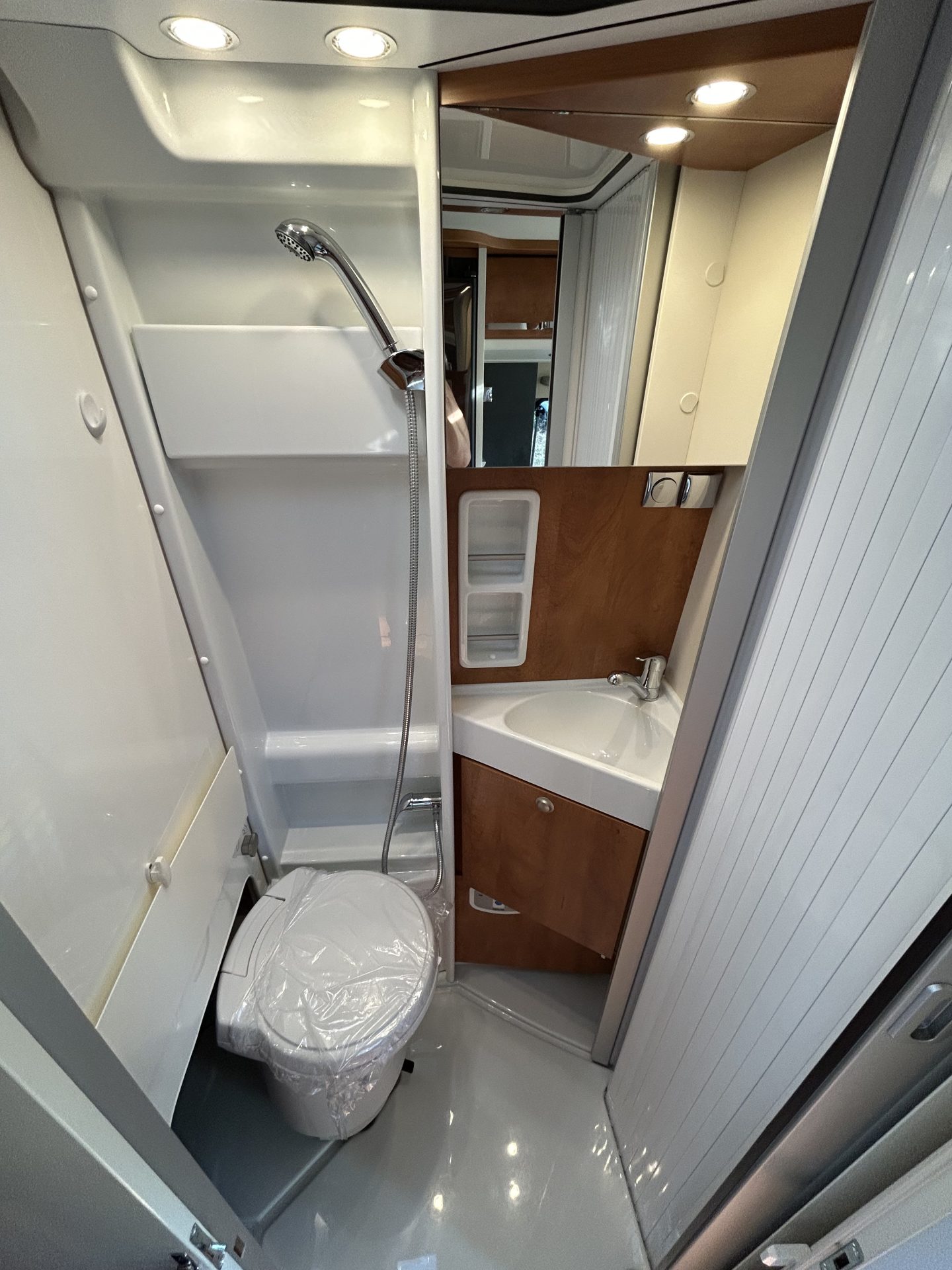 Je camper is standaard uitgerust met een nieuwe toiletset, inclusief toiletbril en cassette. Dit garandeert optimale hygiëne en comfort, zodat je zorgeloos kunt genieten van je reis!