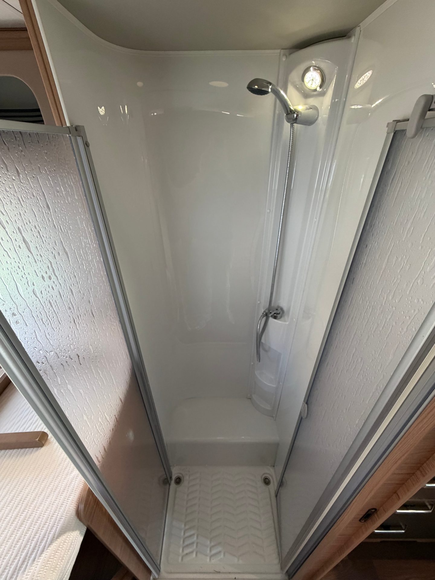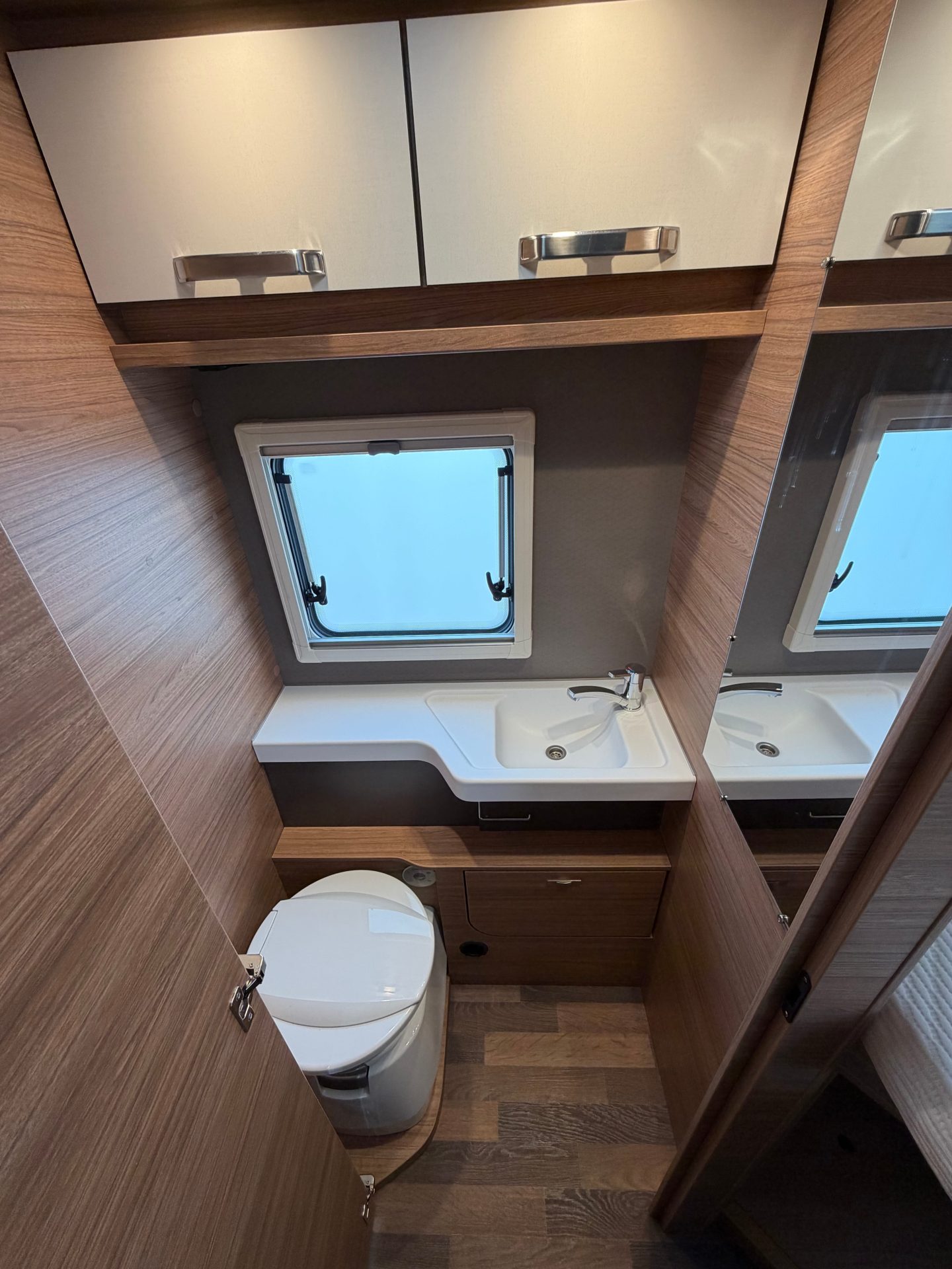 Ook het sanitair is van alle gemakken voorzien. De camper beschikt over een ruime, gescheiden douche- en toiletruimte, zodat je onderweg kunt genieten van hetzelfde comfort als thuis. Een nieuwe toiletset voor maximale hygiëne. En dankzij de Truma boiler is er altijd voldoende warm water beschikbaar – ideaal voor een ontspannen douche na een actieve dag.