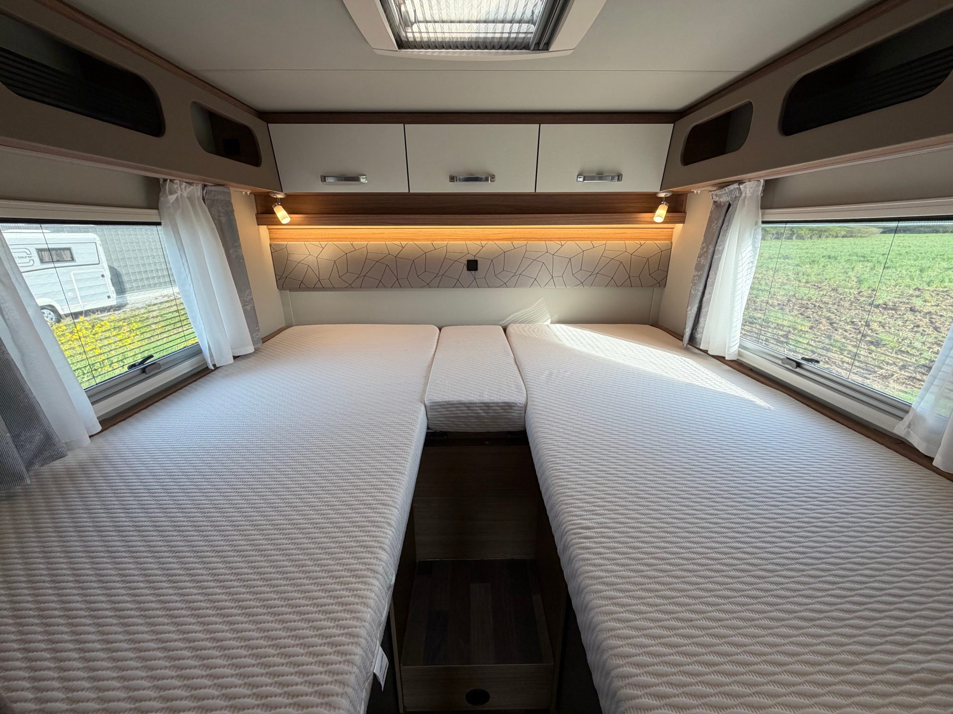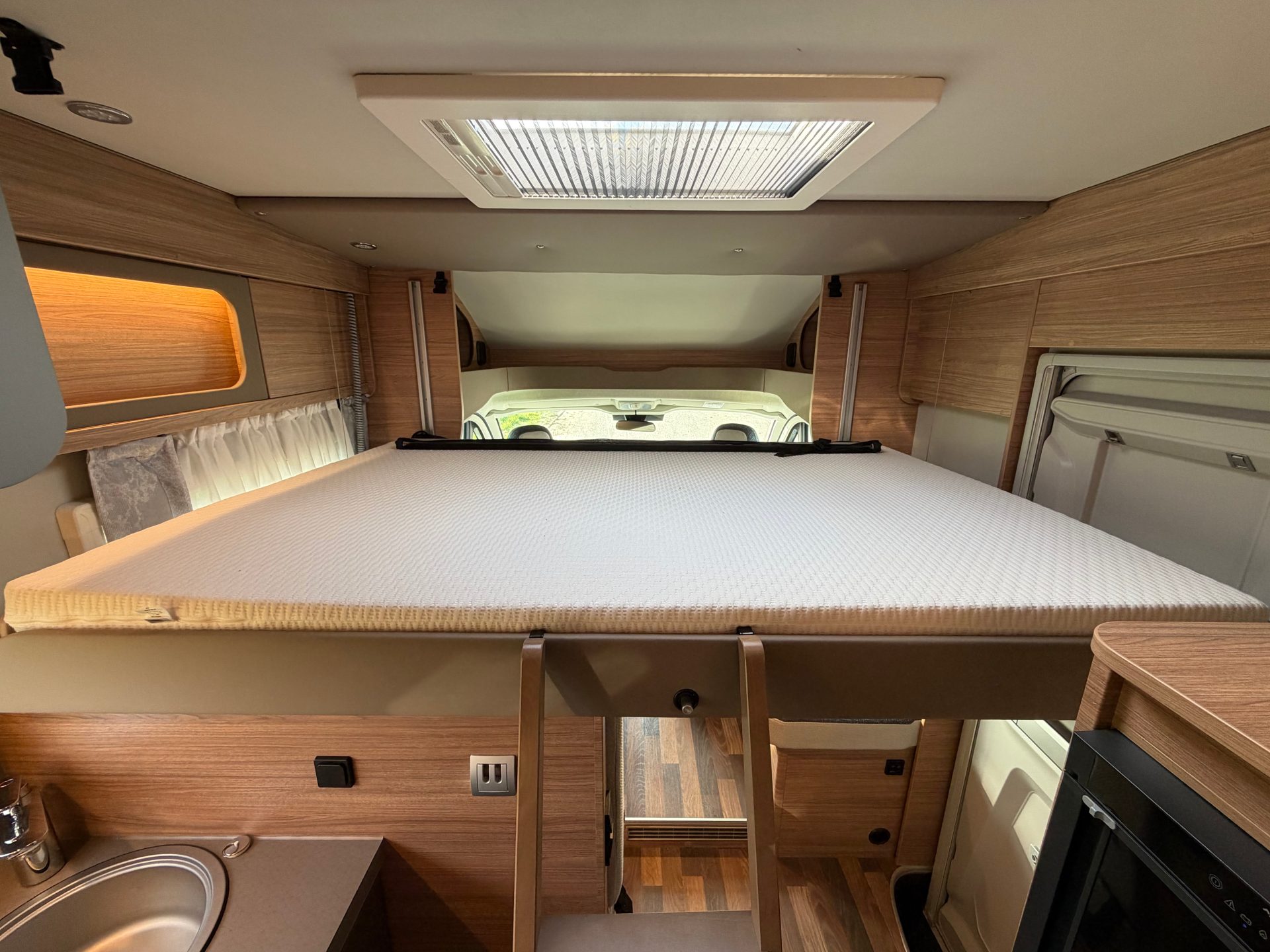 De camper is ontworpen voor een optimale nachtrust. De comfortabele lengtebedden zijn voorzien van nieuwe matrassen en kunnen eenvoudig worden samengevoegd tot één groot tweepersoonsbed. Onder de bedden bevindt zich veel opbergruimte. Daarnaast zijn er stopcontacten en USB-aansluitingen aanwezig naast het bed. Extra slaapplaatsen vind je in het praktische tweepersoons hefbed, dat eenvoudig bereikbaar is via een trapje.