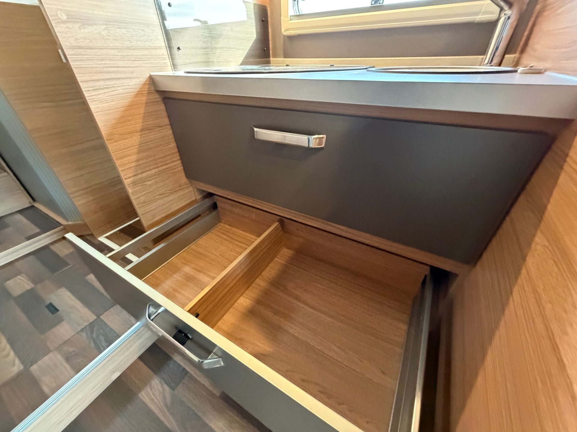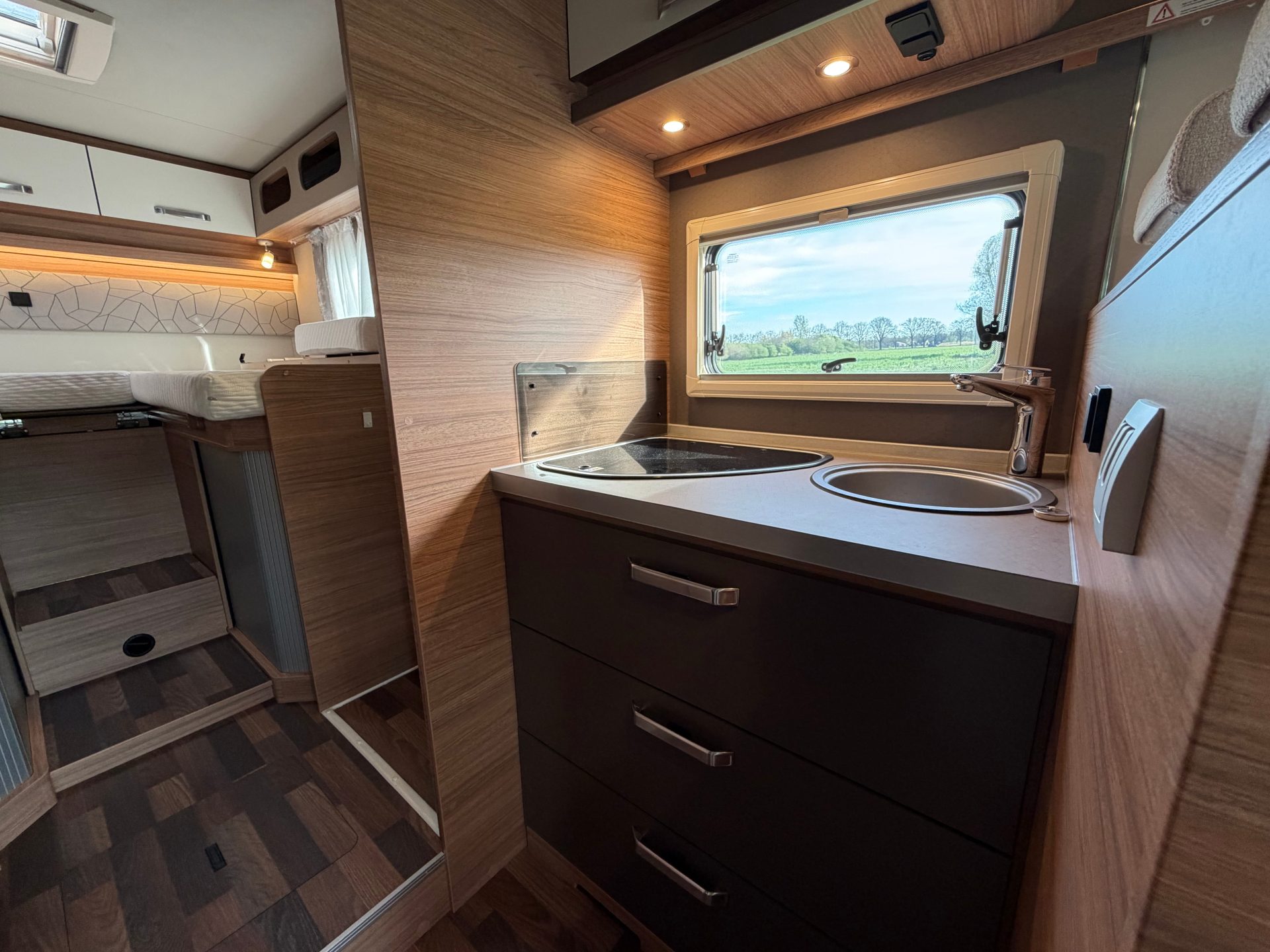 Met een indrukwekkende stahoogte van maar liefst 215 cm ervaar je een uitzonderlijk ruimtelijk gevoel – ook als je wat langer bent. Uniek is dat deze royale stahoogte behouden blijft in de rest van de camper, zelfs met het hefbed.