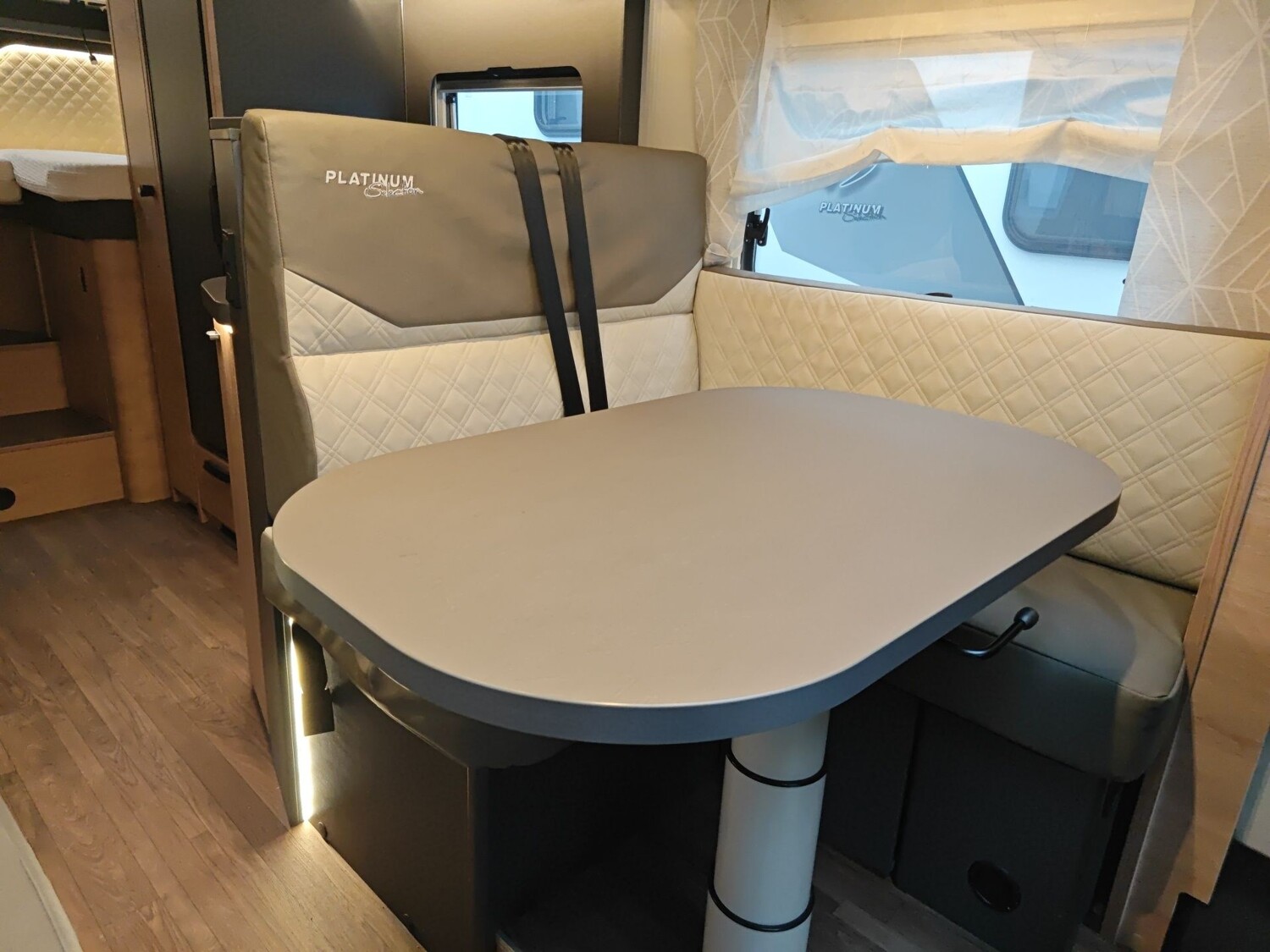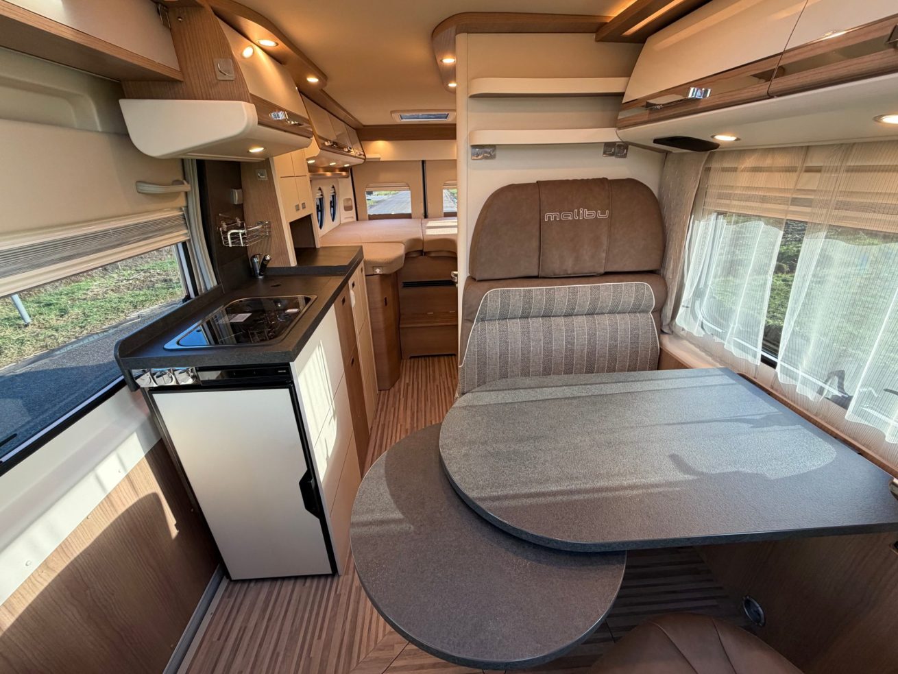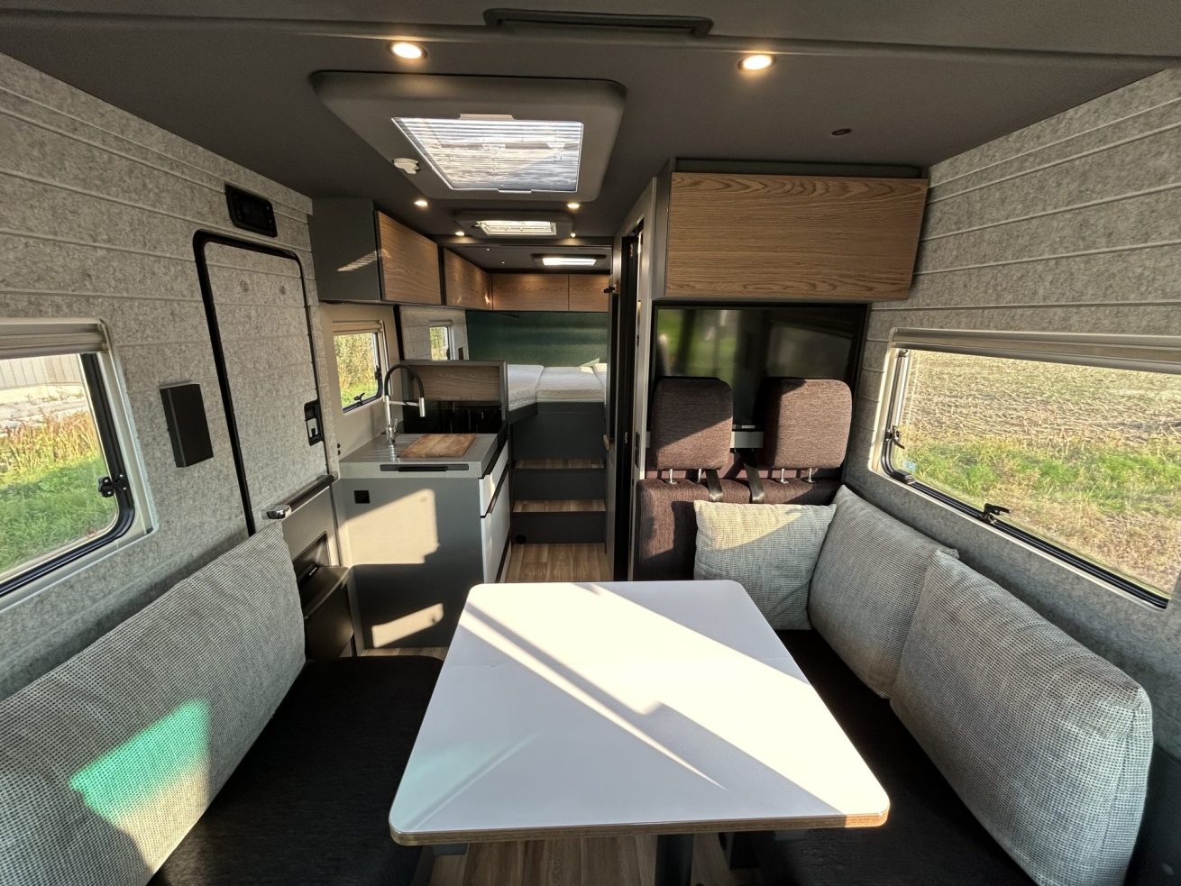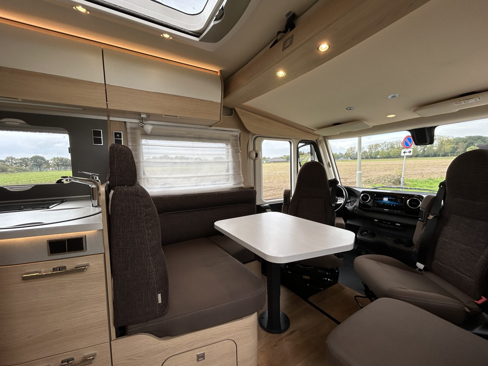 - Deze indeling oogt modern en wordt steeds vaker toegepast in hedendaagse campers.
