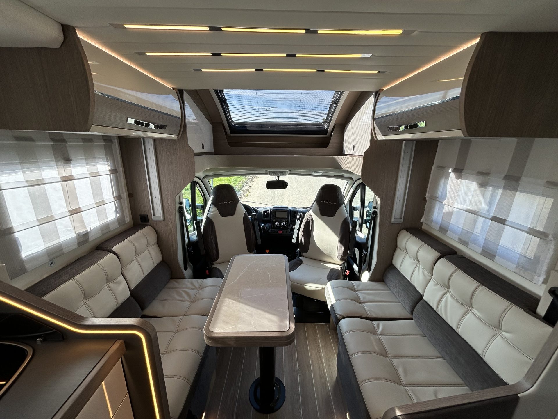 De rondzit (U-vorm) bevindt zich meestal achterin de camper en staat bekend om zijn royale uitstraling.